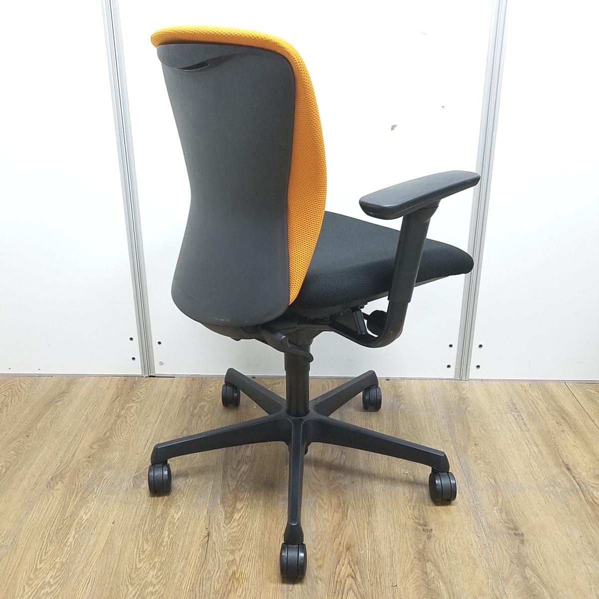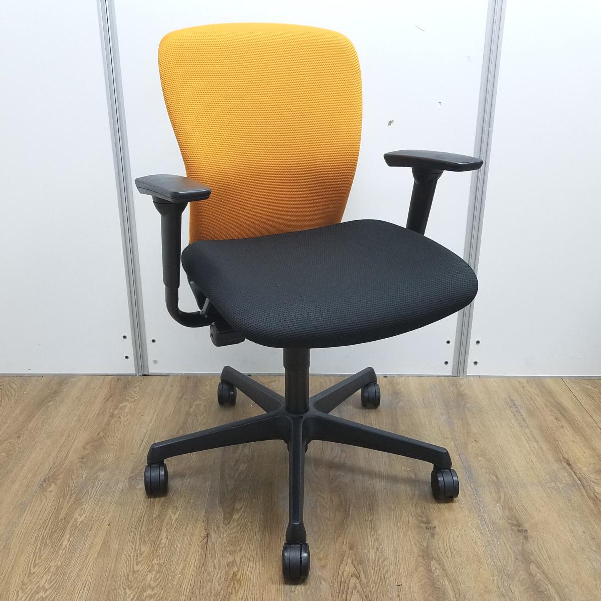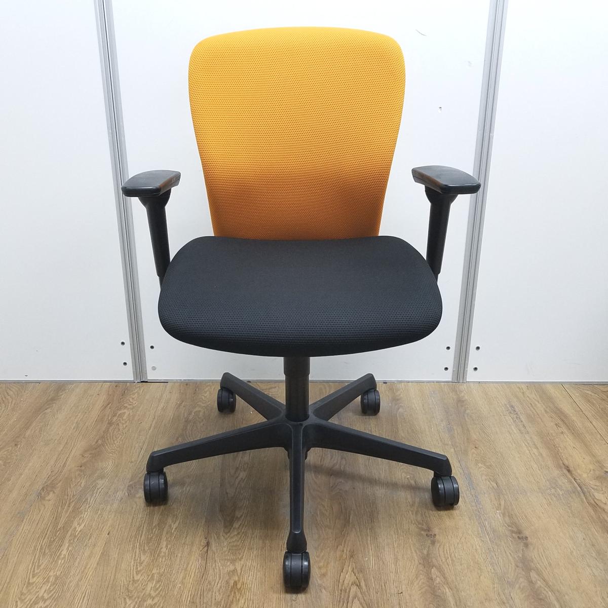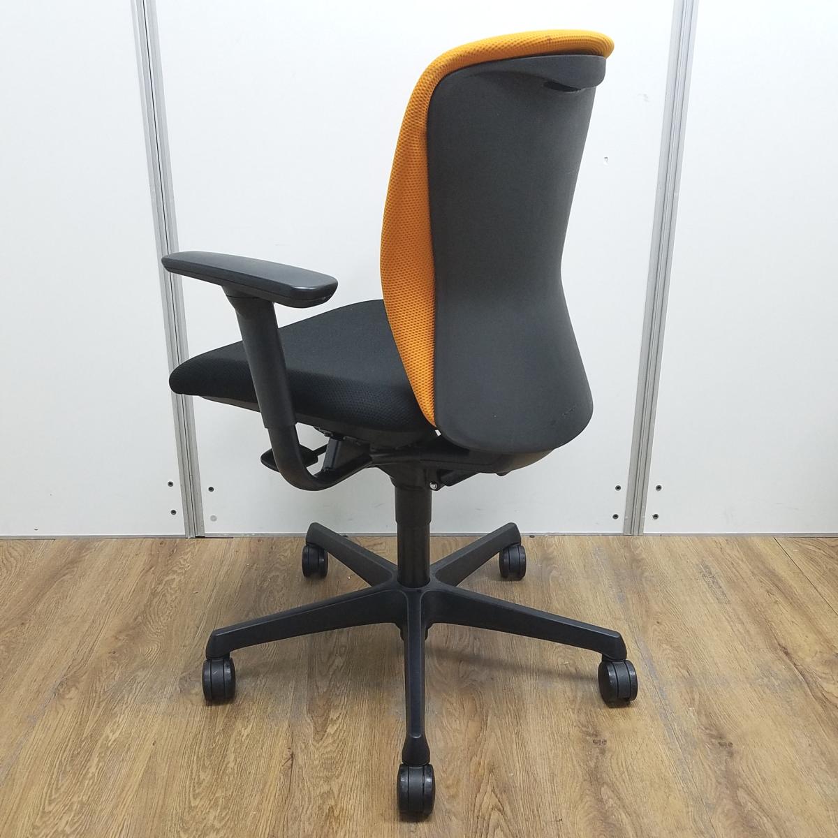 【シンプルなデザインと厚みのあるクッションが大人気!機能充実のワーキングチェア!】■オカムラ(okamura)製 スラート(sulato)チェア 肘付き ローバック ■可動肘 ■背面:オレンジ × 座面:ブラック ■ハンガー付き
