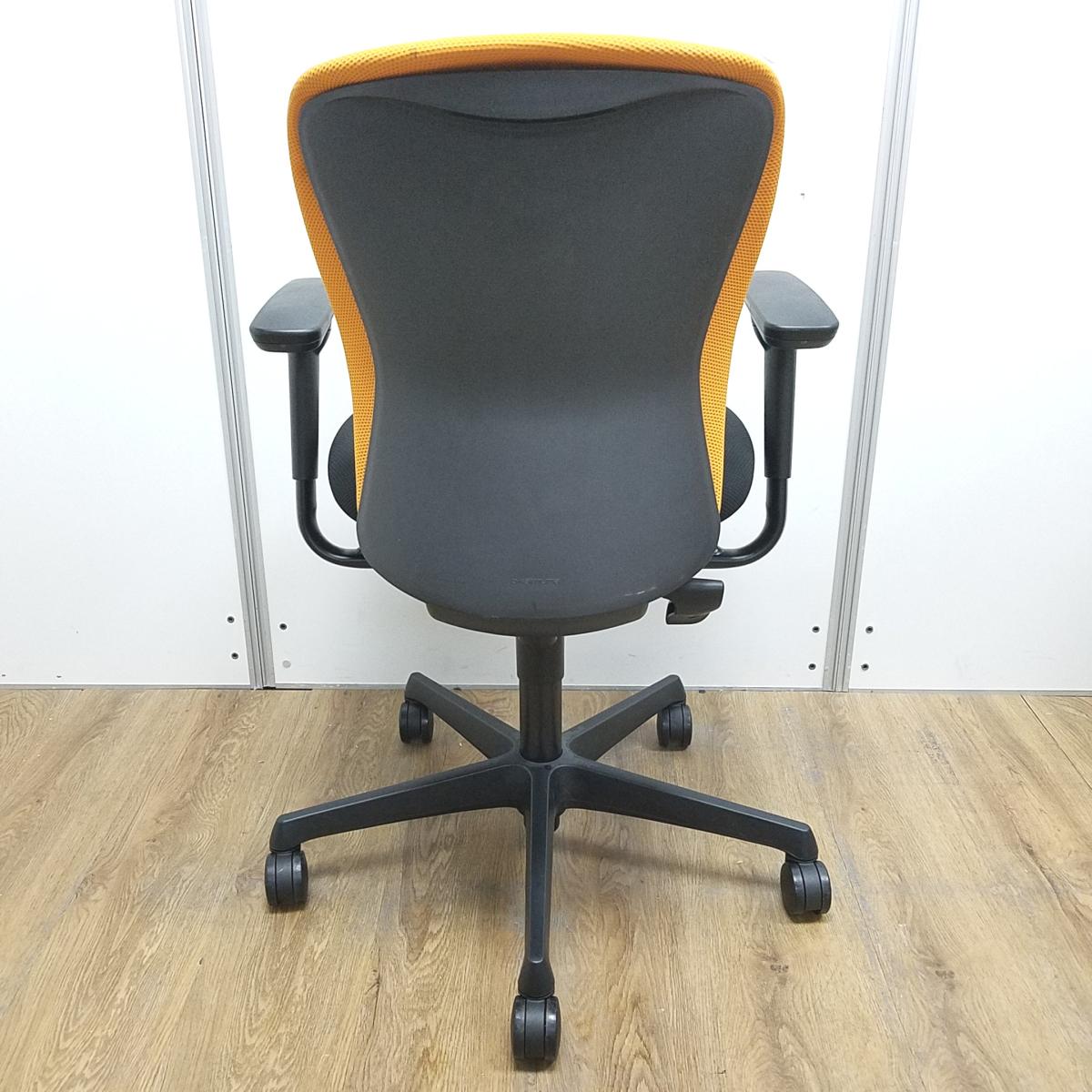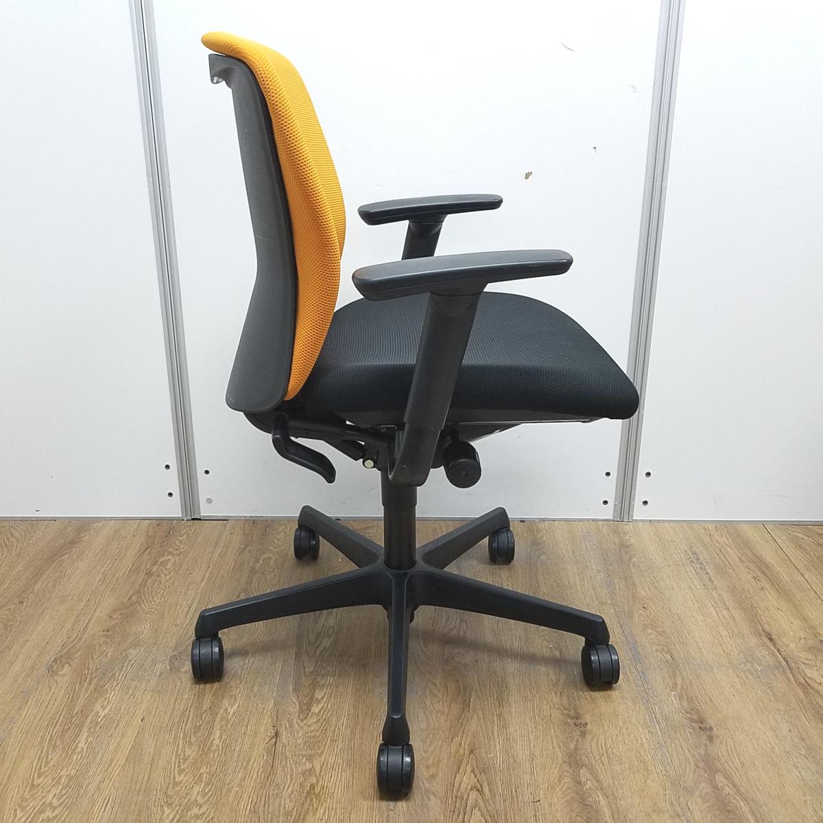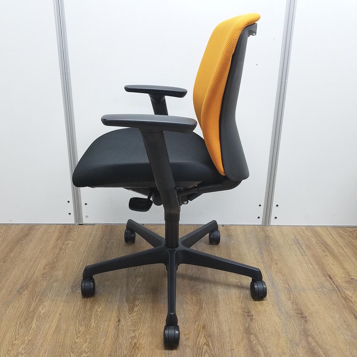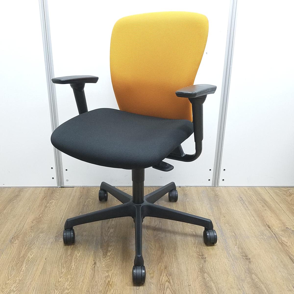 【シンプルなデザインと厚みのあるクッションが大人気!機能充実のワーキングチェア!】■オカムラ(okamura)製 スラート(sulato)チェア 肘付き ローバック ■可動肘 ■背面:オレンジ × 座面:ブラック ■ハンガー付き