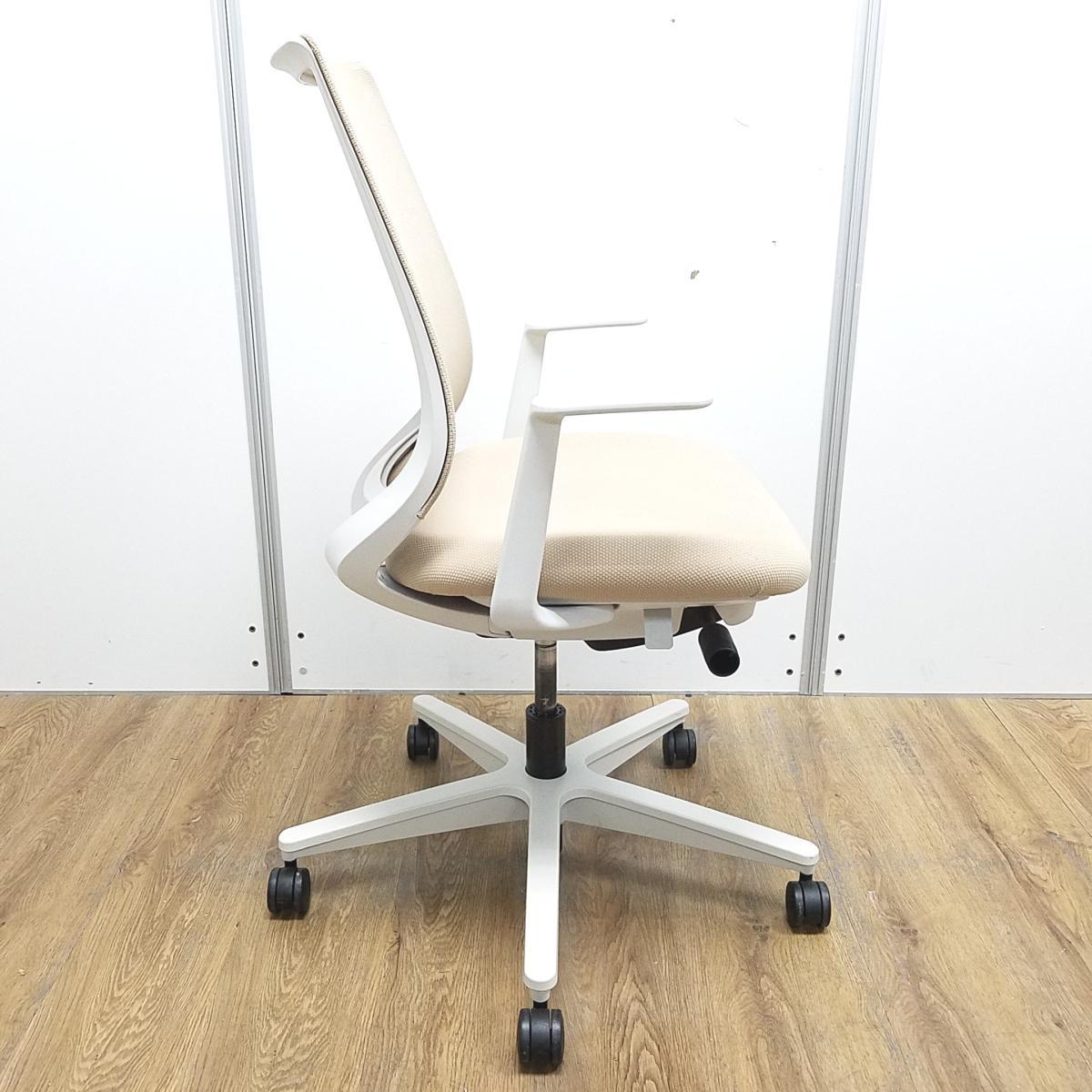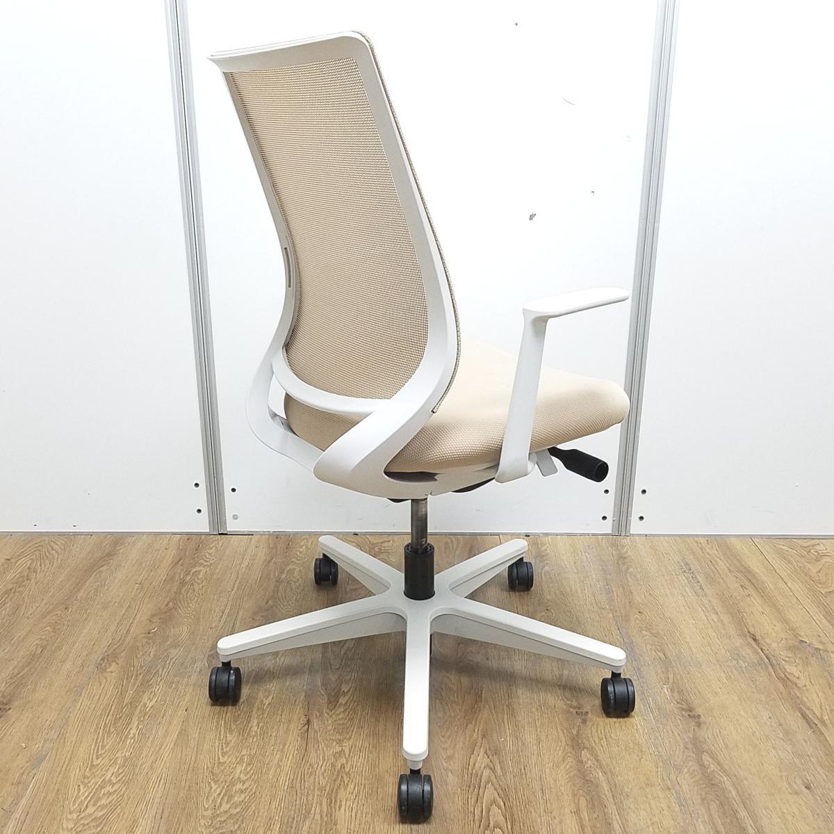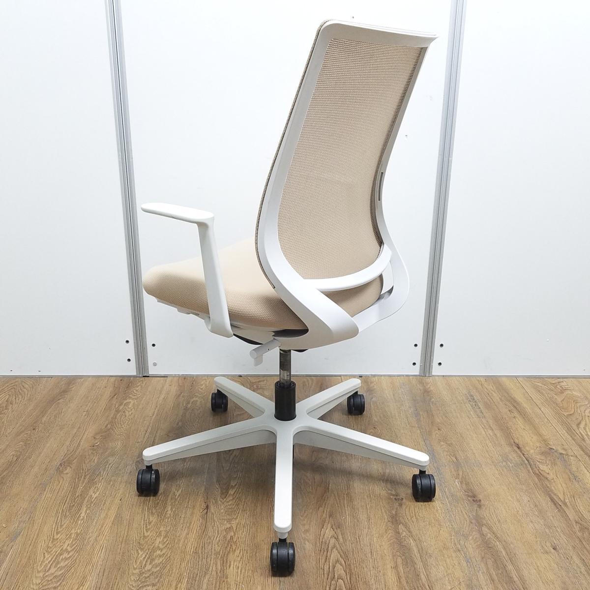 コクヨ製 ミトラ2 ソフトベージュ ホワイトフレーム 背面メッシュ L型肘※固定肘 すっきりと上質なデザイン! 快適な座り心地を実現するオフィスチェア! 肘付きローバックチェア!!- 京都東寺店