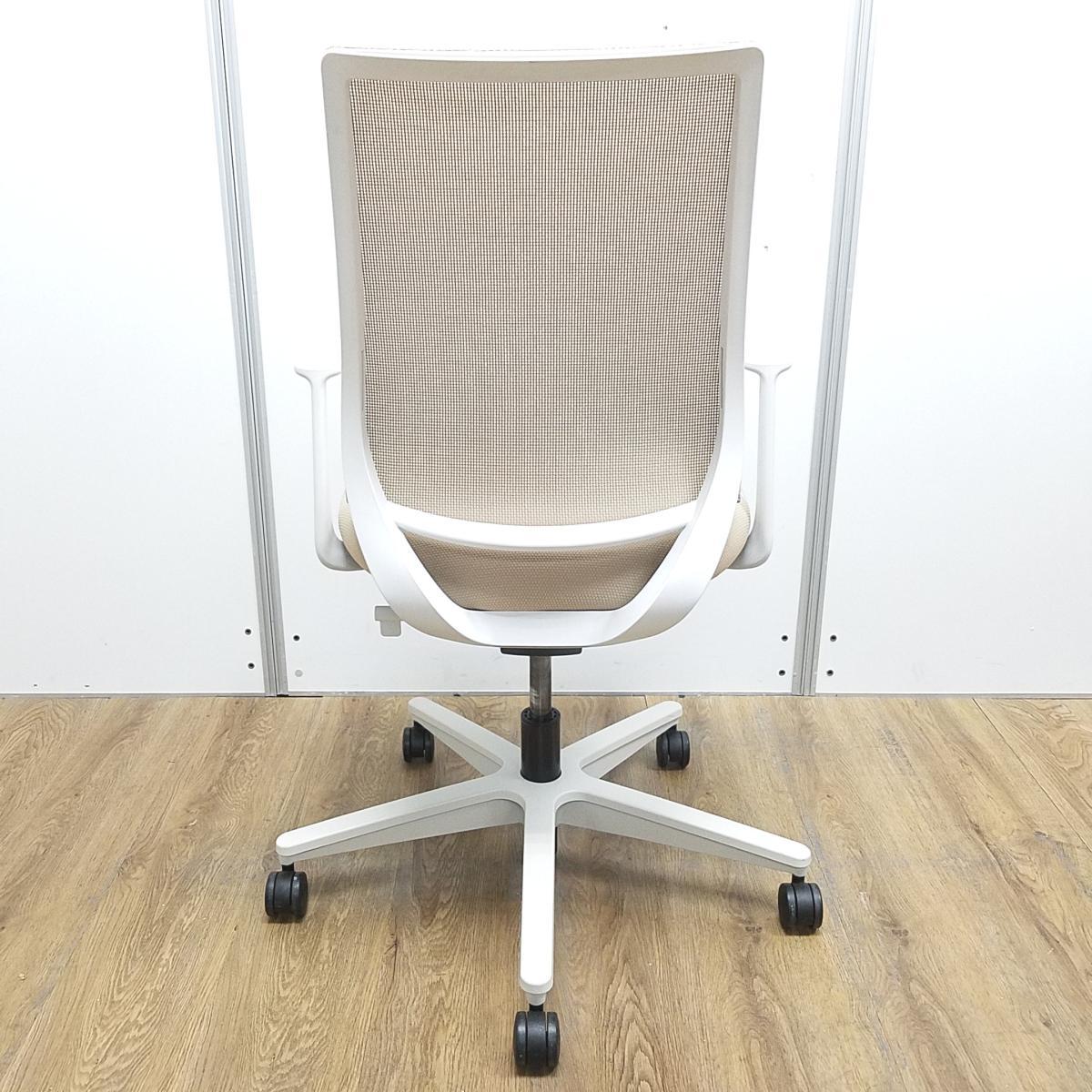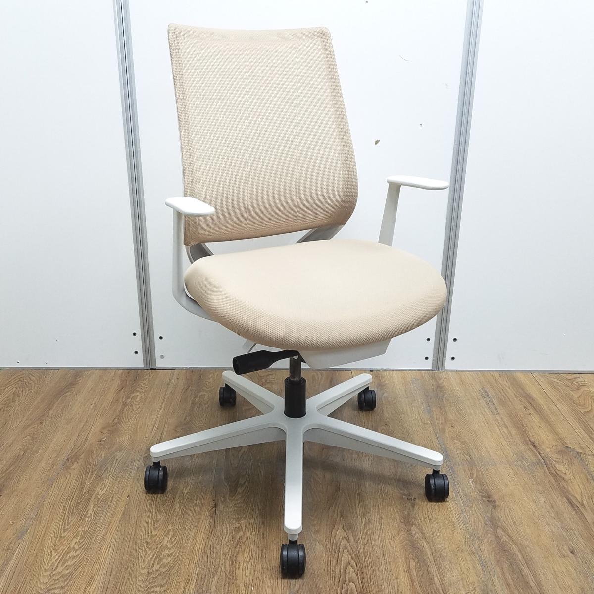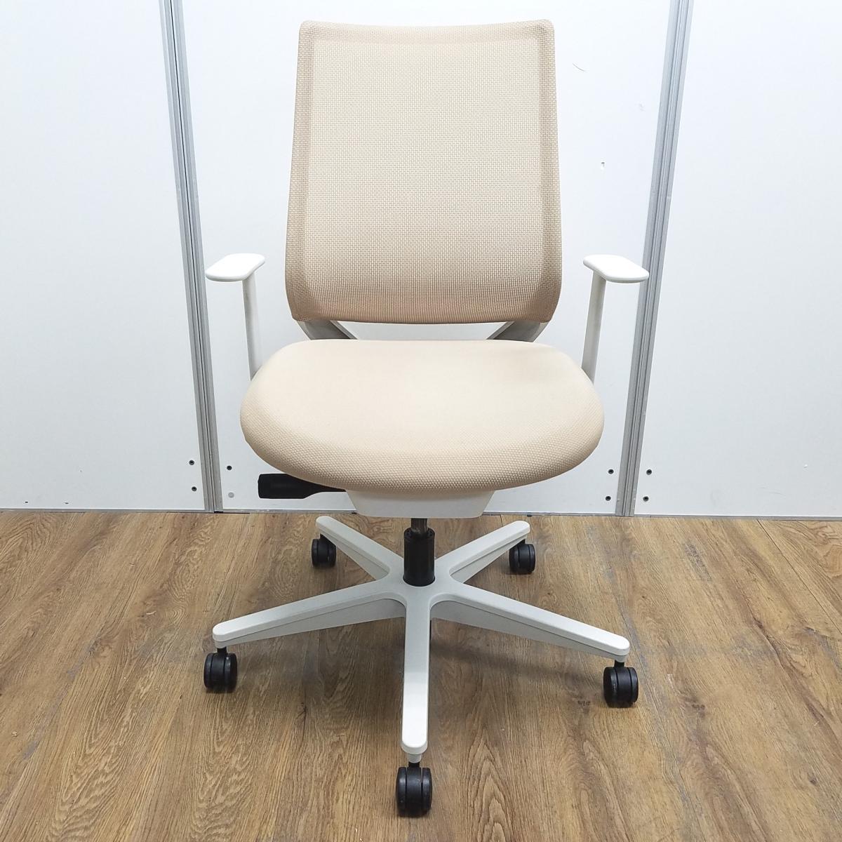コクヨ製 ミトラ2 ソフトベージュ ホワイトフレーム 背面メッシュ L型肘※固定肘 すっきりと上質なデザイン! 快適な座り心地を実現するオフィスチェア! 肘付きローバックチェア!!- 京都東寺店