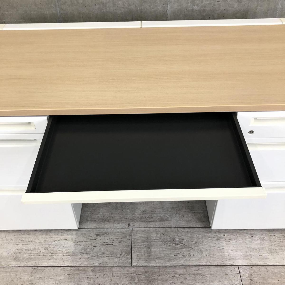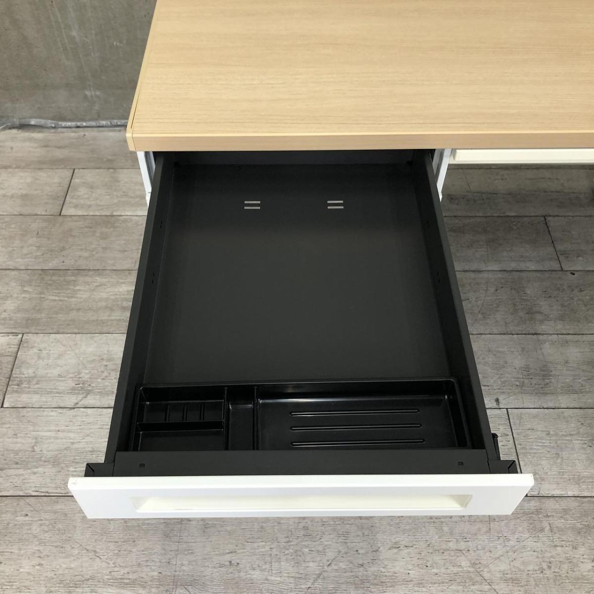 【訳あり品】両袖タイプで収納たっぷり!幅1400㎜でワークスペースもしっかり確保! ■オカムラ/アドバンス/天板ナチュラル/本体ネオホワイト 引出付き シリンダー錠 W1400×D700×H720㎜