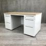 【両袖タイプで収納たっぷり!幅1400㎜でワークスペースもしっかり確保!】■オカムラ(okamura)製 アドバンス 両袖机 幅1400㎜ ■本体:ホワイト 天板:木目ナチュラル ■シリンダー錠- 浜松サテライト