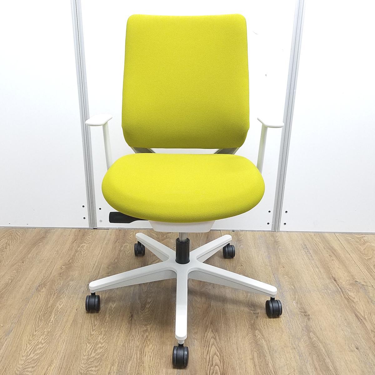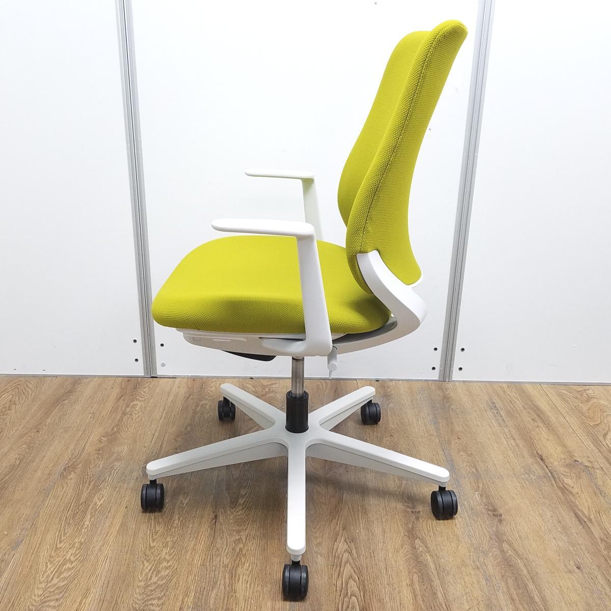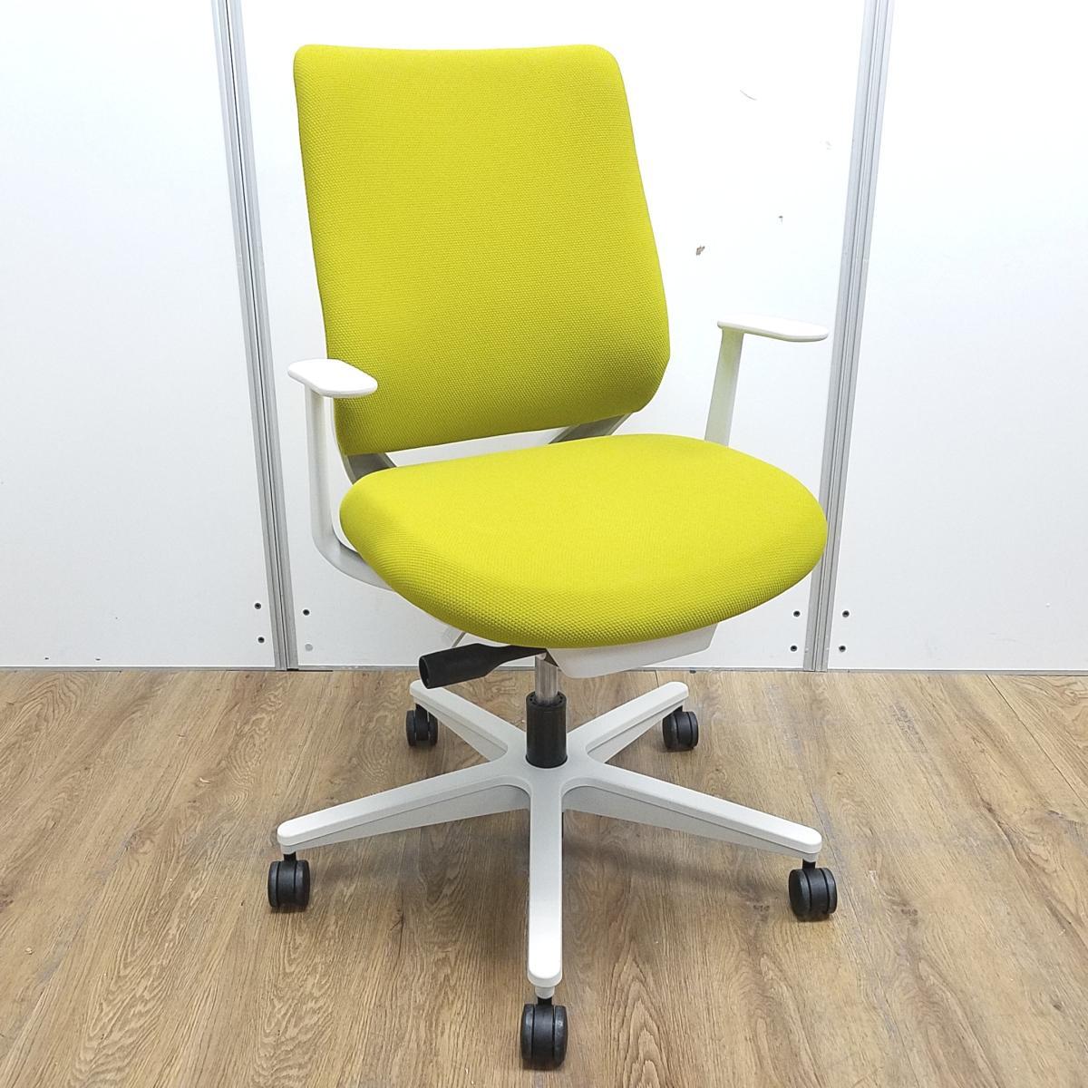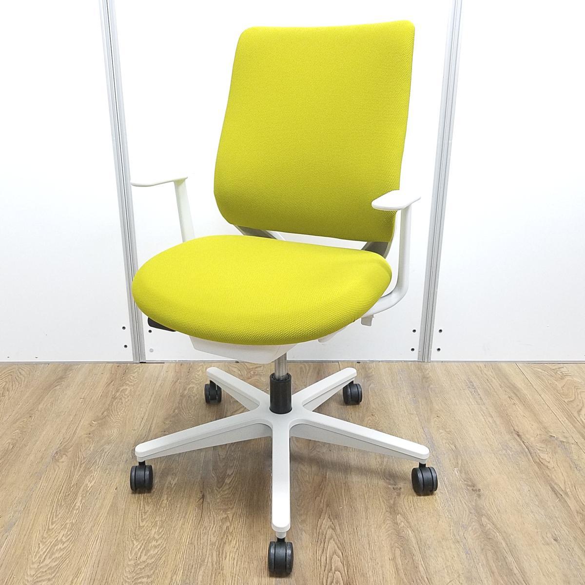コクヨ製 ミトラ2 ライトオリーブ ホワイトフレーム 背面クッション l型肘※固定肘 すっきりと上質なデザイン! 快適な座り心地を実現するオフィスチェア! 肘付きローバックチェア!!- 京都東寺店
