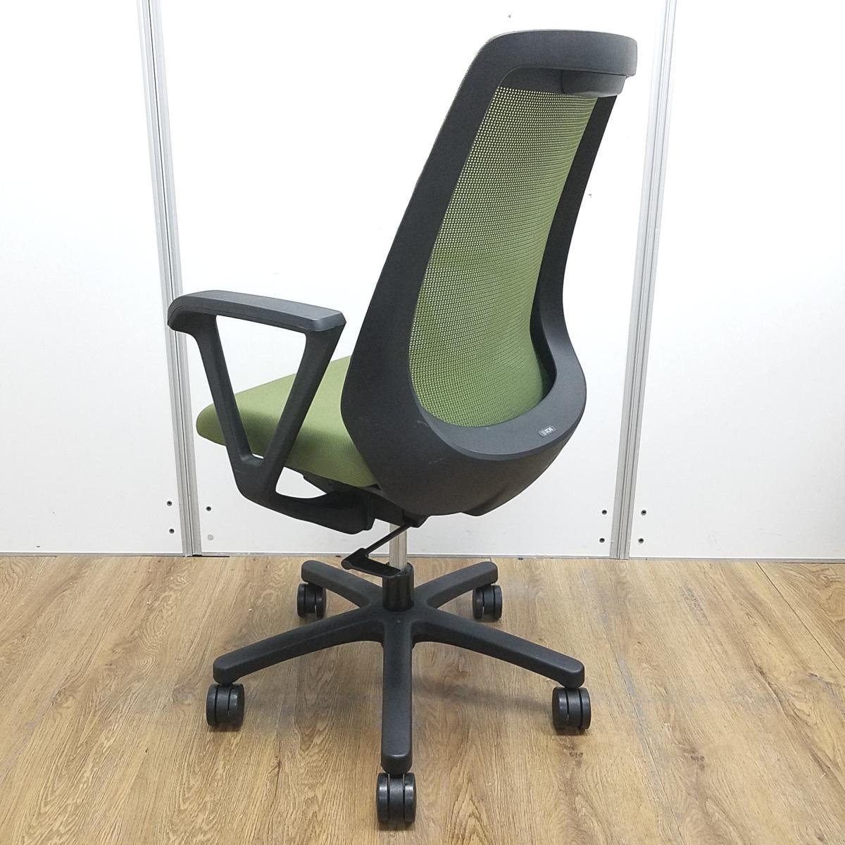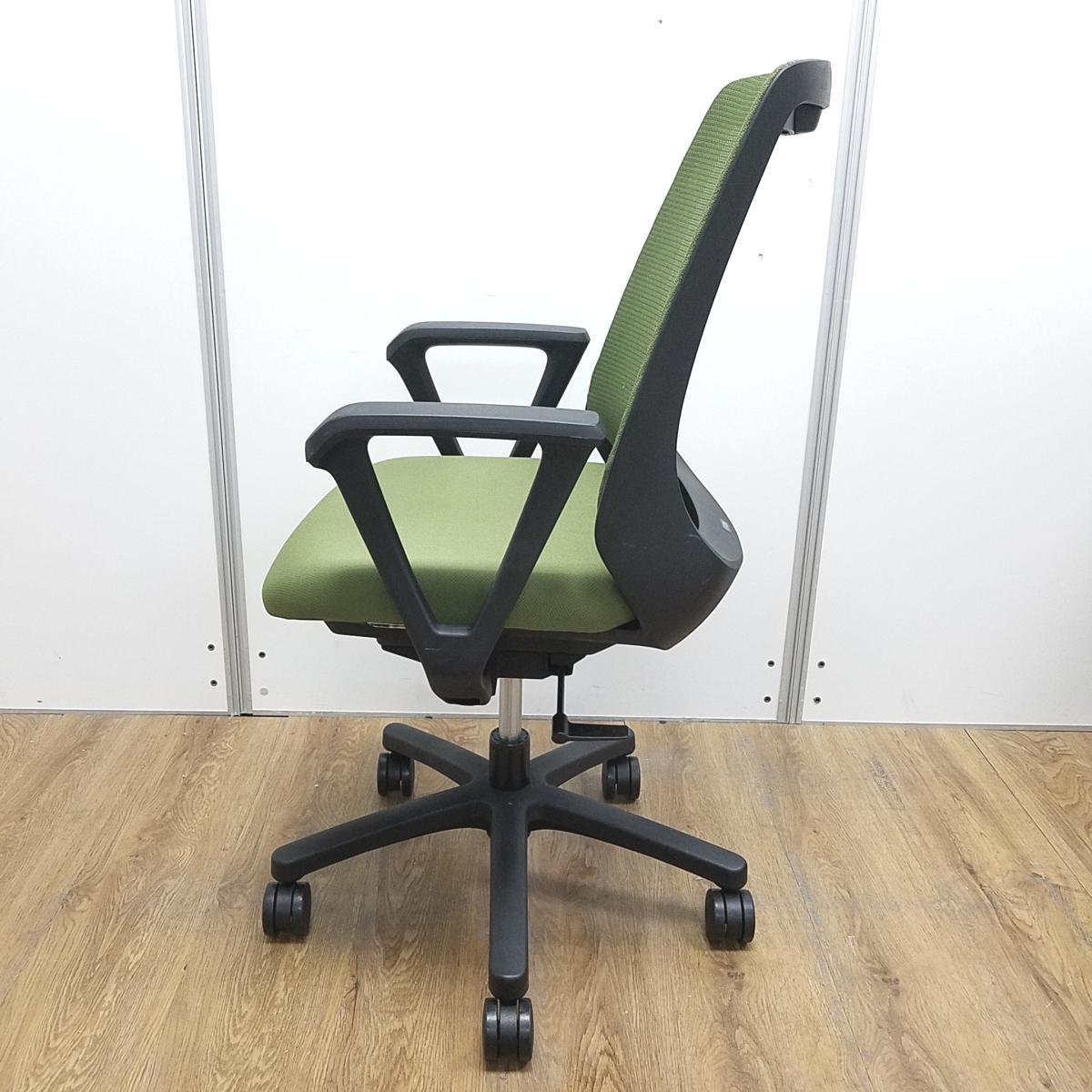 【T9】【商品入替のため、残り5脚限り】イトーキ製 ノナ アイビーグリーン ブラックフレーム 背面メッシュ ループ肘※固定肘 理想的な作業姿勢をキープ! デスクに納まりの良いコンパクトメッシュチェア! 肘付きハイバックチェア!!- 京都東寺店
