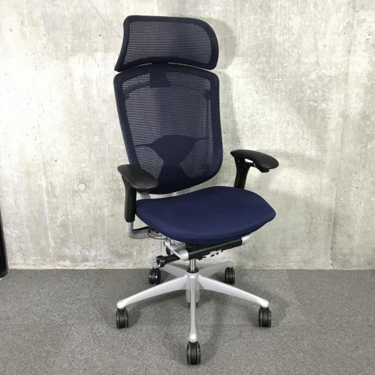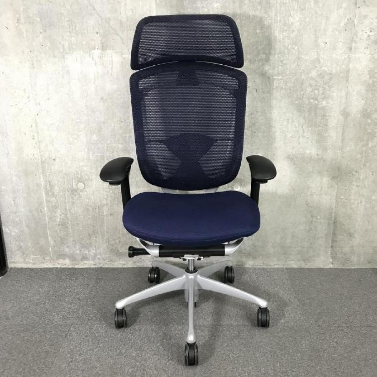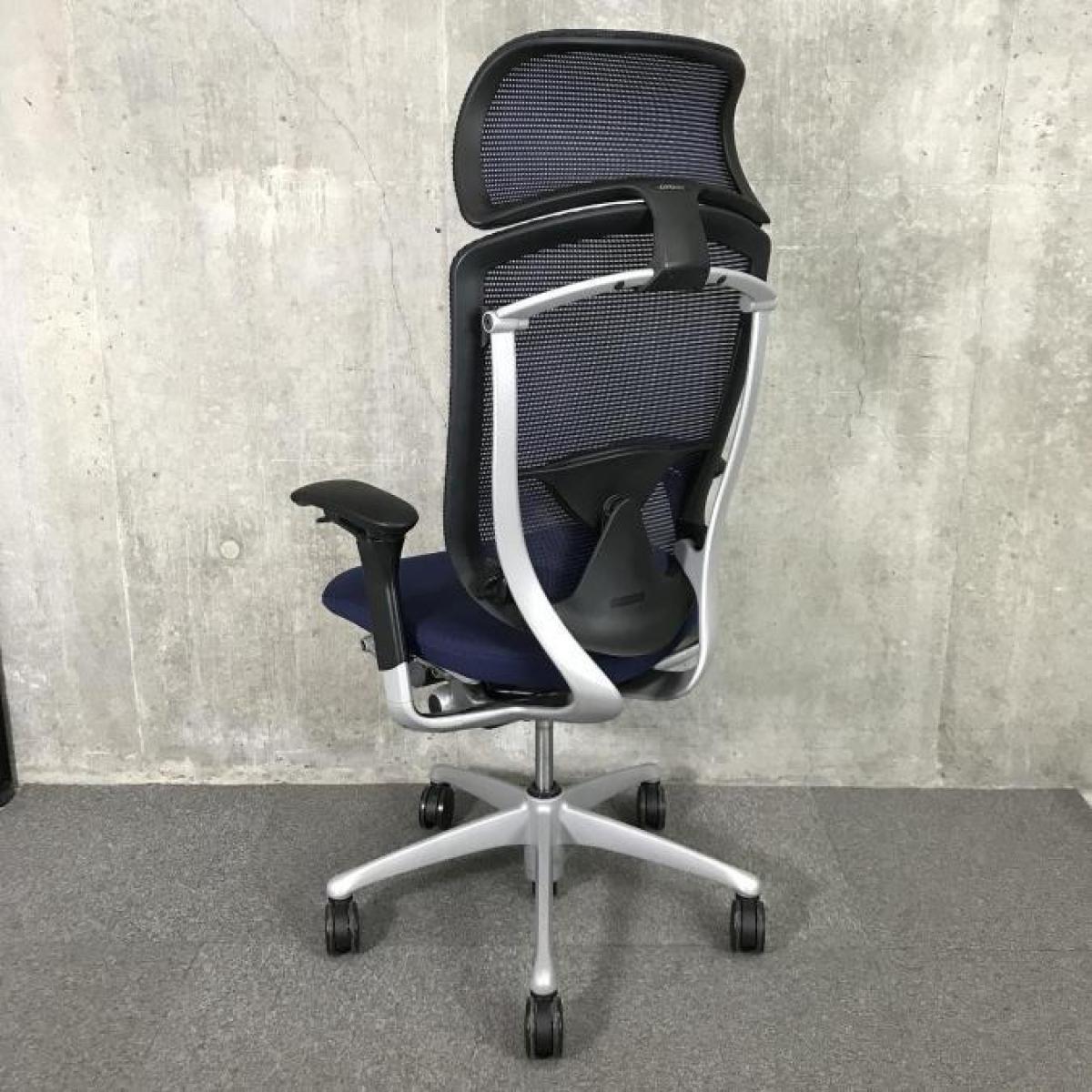 【在庫入替セール品!】☆在庫限り!人気のヘッドレスト付!■オカムラ コンテッサチェア 可動肘付 ダークブルー ※背裏フレームに擦りキズ・塗装剥がれがあるためお安く! ■世界で認められた革新的タスクチェア!【人間工学に基づいた快適な座り心地!】【Okamura Contessa】- 川崎店