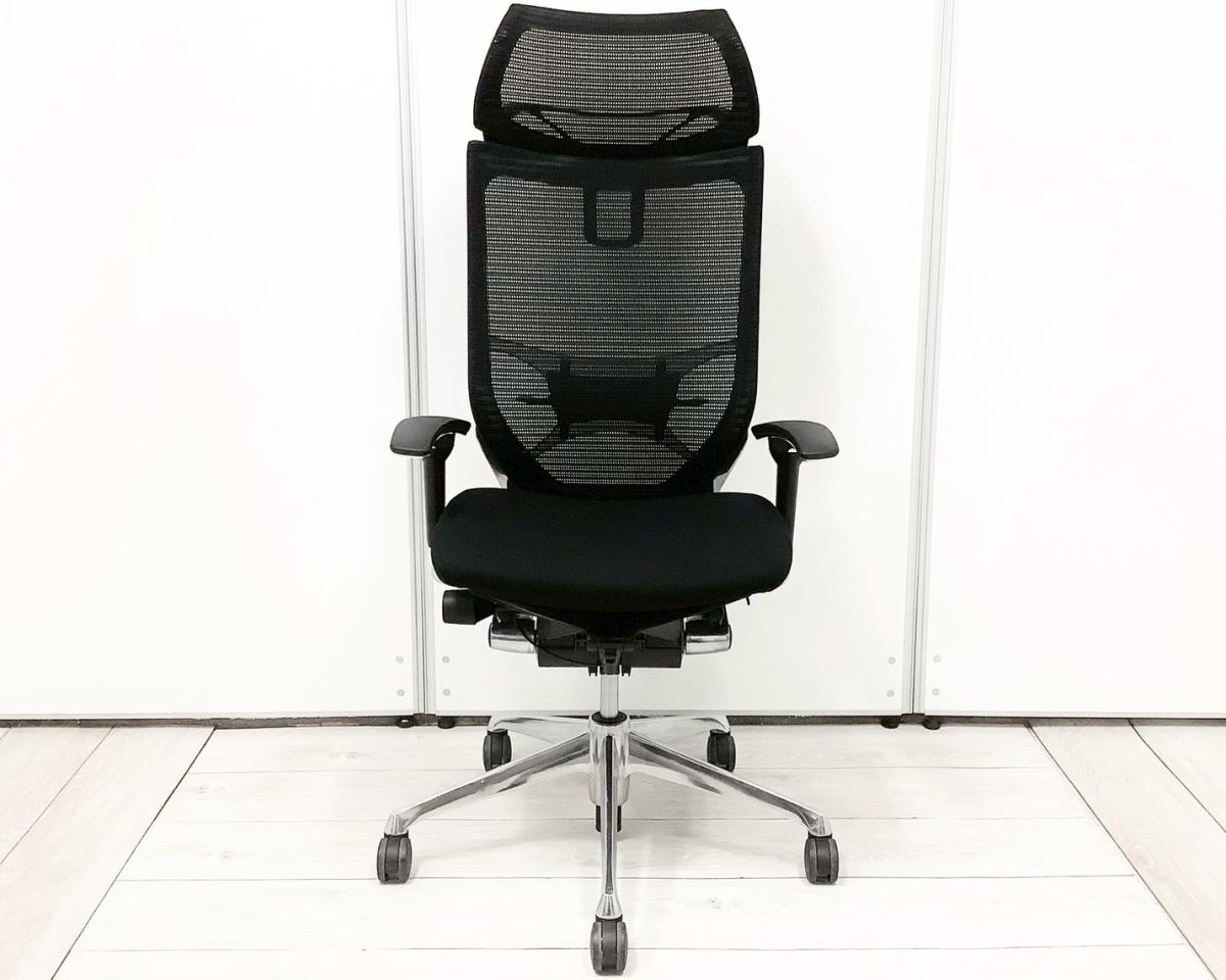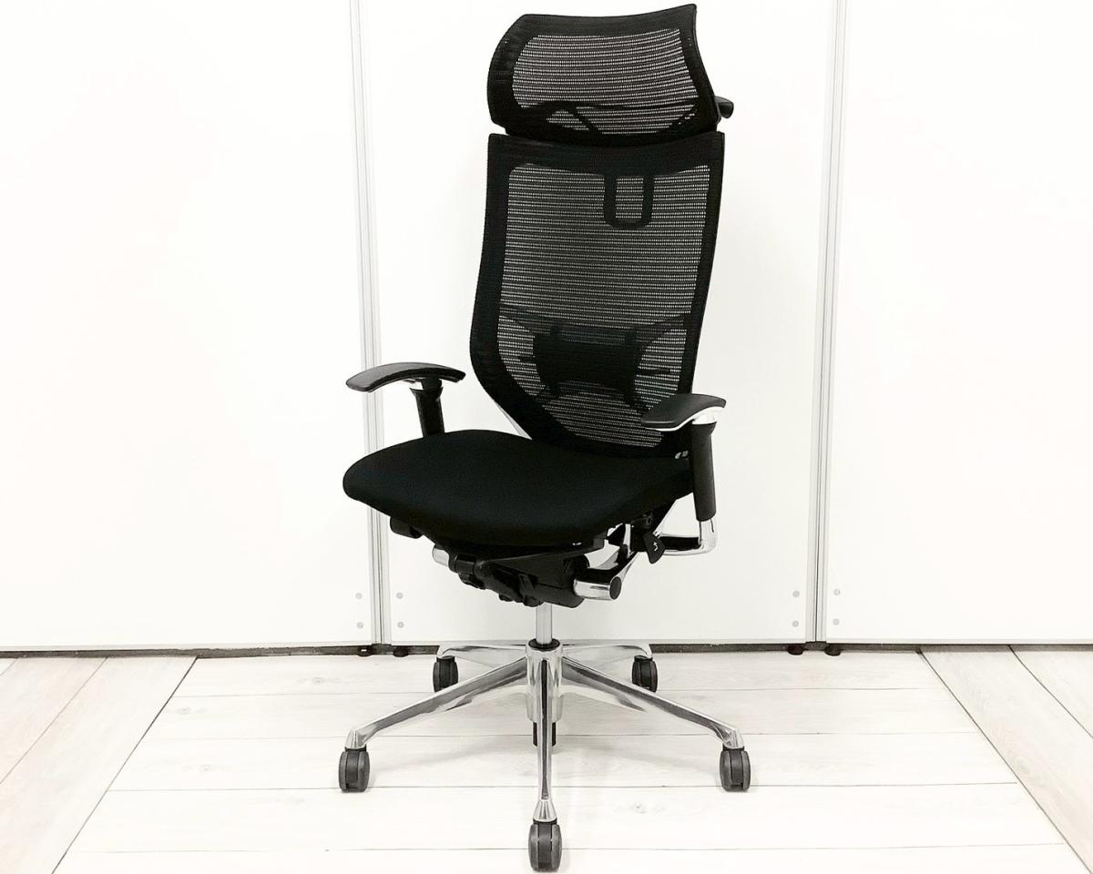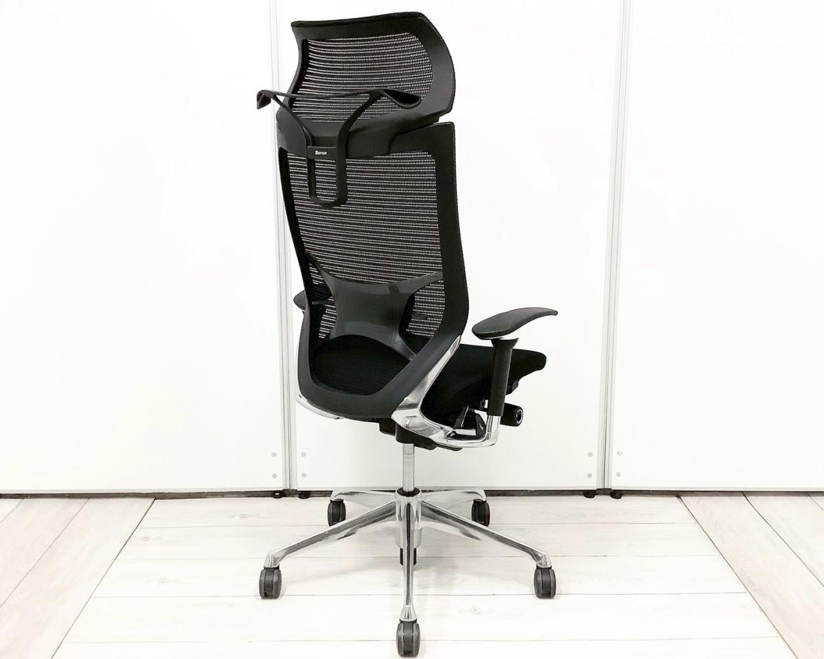 【オフィスの執務室、会議室におすすめ!】■オカムラ(okamura)製 バロン(Baron)チェア 肘付き ハイバック ■背・座面メッシュ ■可動肘 ■ヘッドレスト付き ■ブラック【硬めの座面が大人気!国産メッシュチェアの代表格!】
