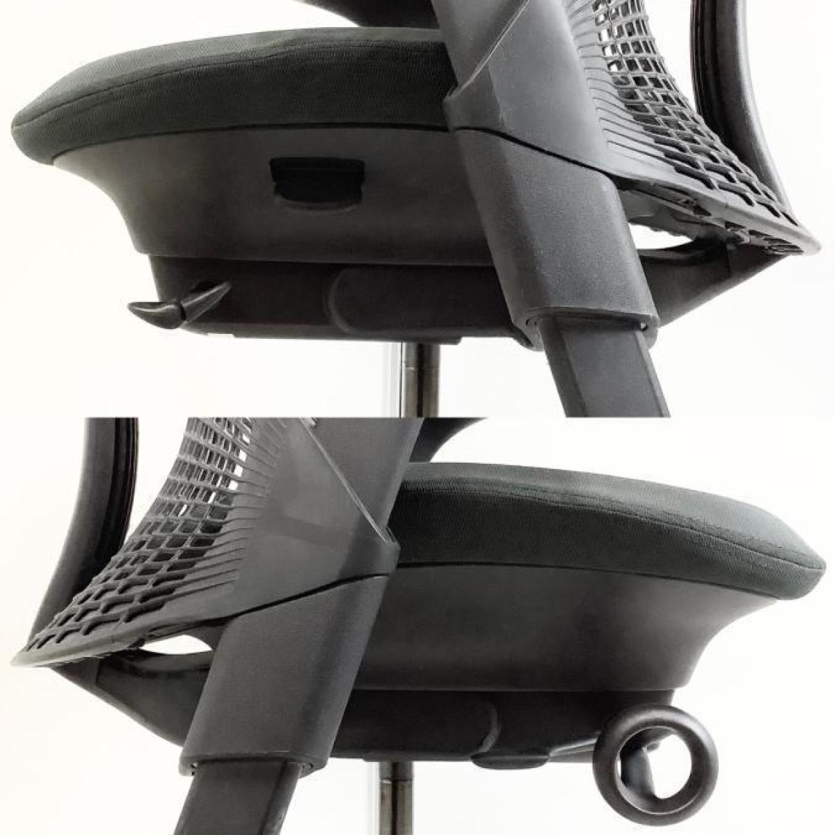 - 座ったまま、レバー操作一つで、簡単に座面を前傾できます。前傾姿勢を取ることが多いデスクワーカーに最適です。