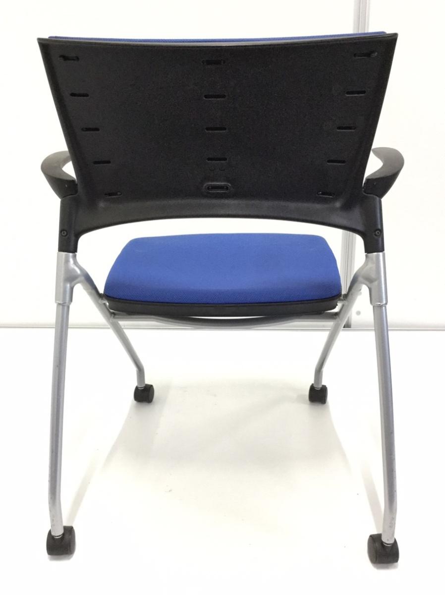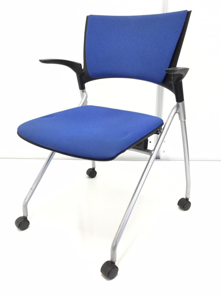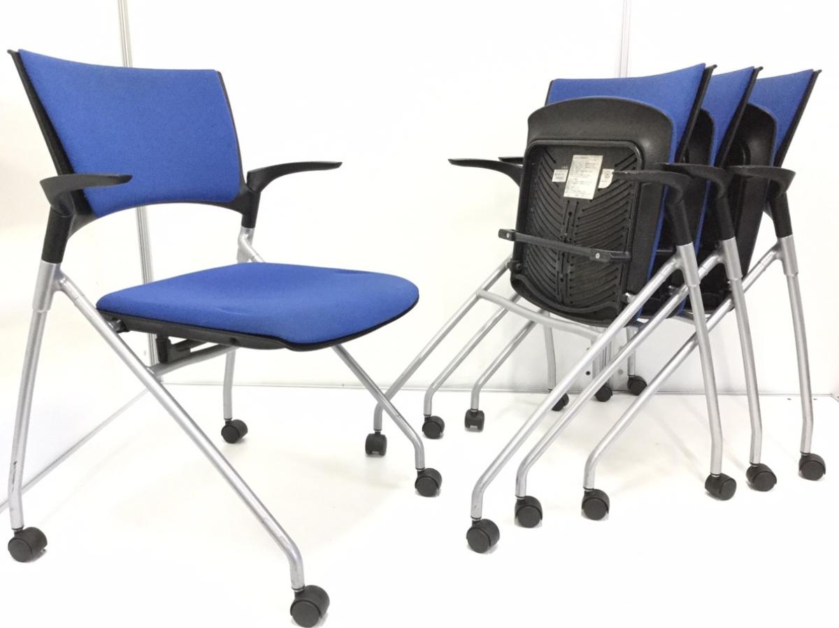 【キャスター付でスイスイ動かせる!省スペースで収納可能!会議や研修にオススメ!】■イトーキ製 マノス(MANOSS) ネスティングチェア 背面パッド無し ■ストロングブルー ■オフィスバスターズ東大阪店 【W】
