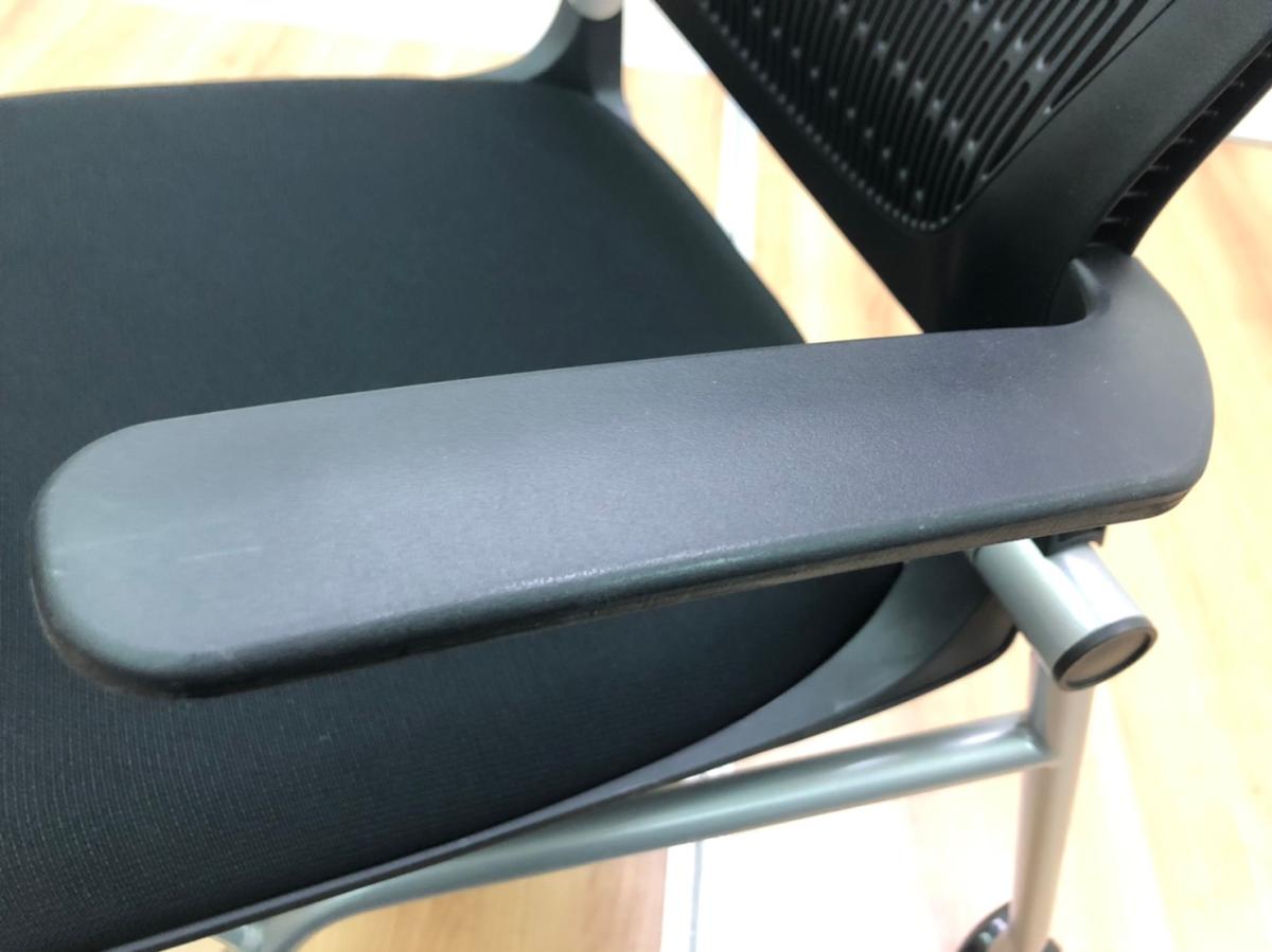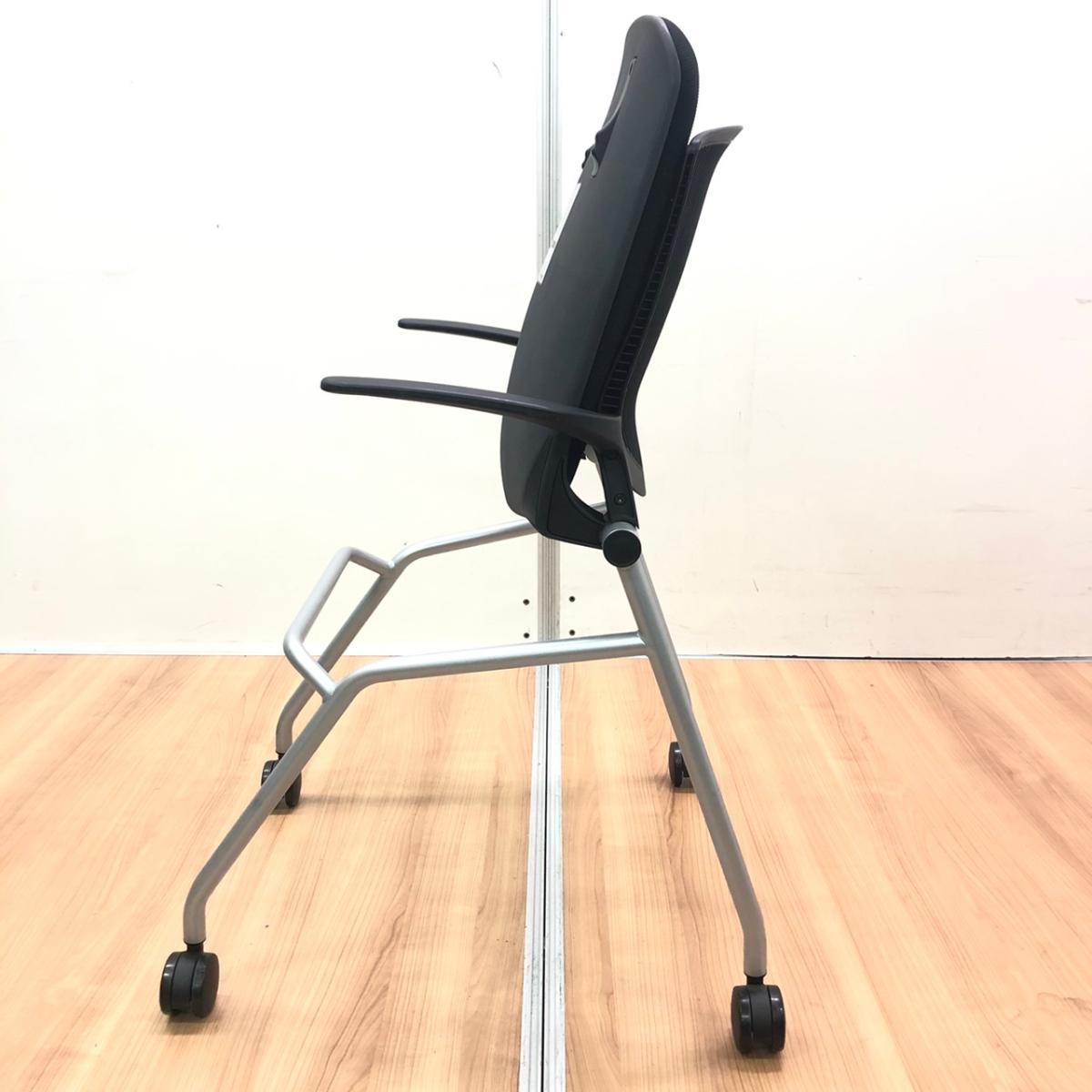 【上質なデザインで快適な座り心地!】■オカムラ グラータシリーズ ネスティングチェア 肘付 ブラック【平行スタッキング】【Okamura Grata】- 川崎店