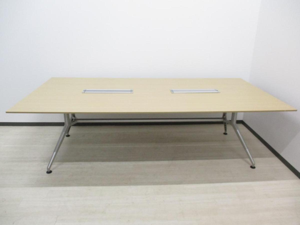 【会議室だけでなく休憩室でも!6~8名様対応・大型テーブル】■イトーキ(ITOKI) DDDシリーズ ミーティングテーブル 会議テーブル 幅2400×奥行900mm ■木目ナチュラル天板 脚シルバー色 オフィスバスターズ東大阪店