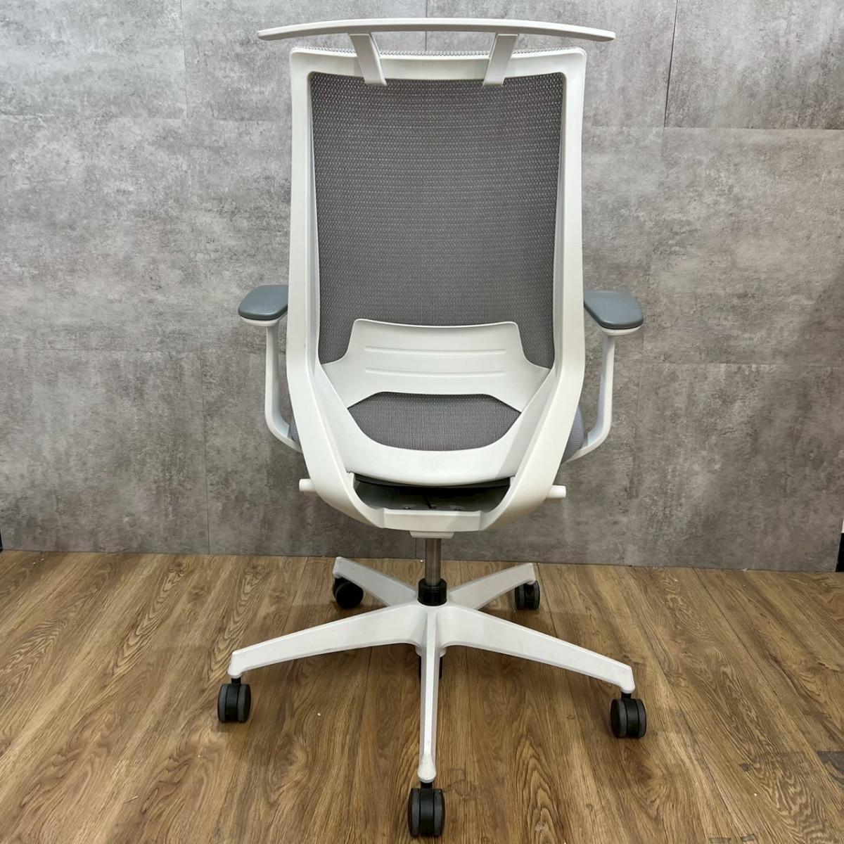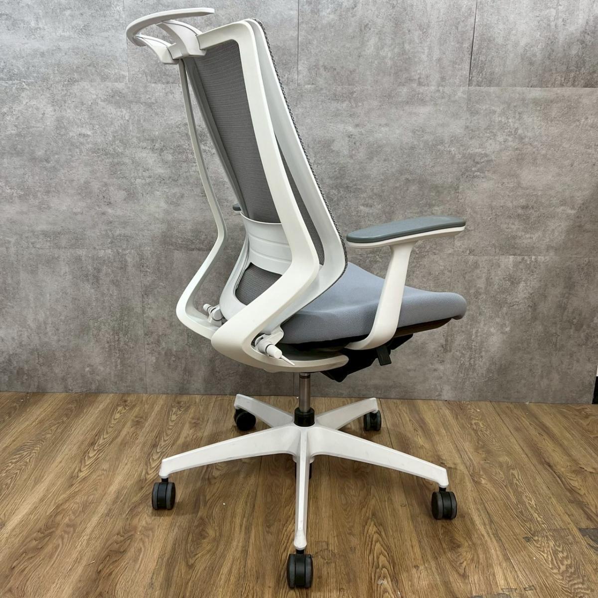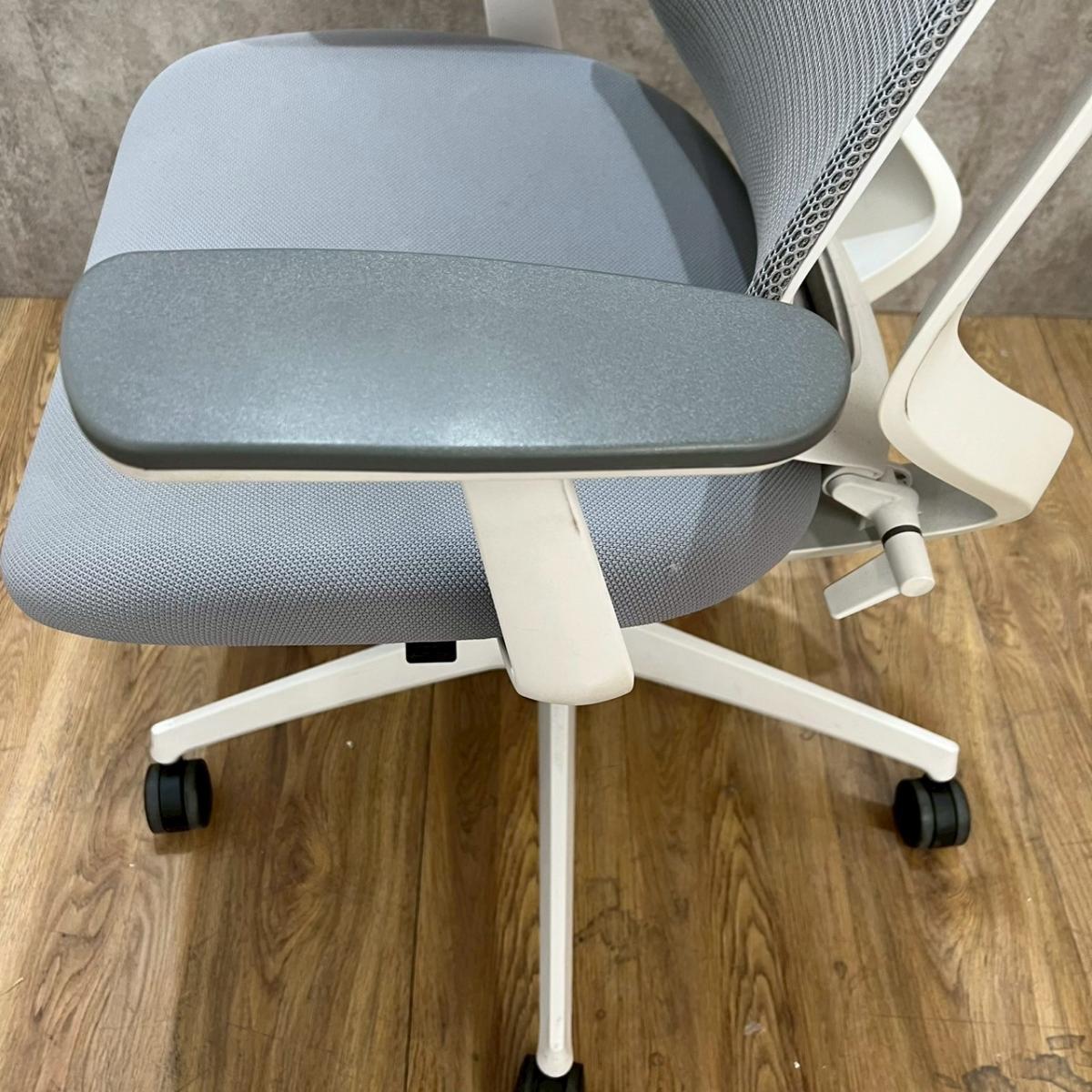 ★コクヨ製 デュオラ ホワイトグレー ホワイトグレーフレーム 肘付き ハイバック 背面メッシュ 樹脂脚 アジャスタブル※可動肘 二重フレーム構造がもたらすしなやかで美しい背もたれ機能! 簡易操作で自分に合った姿勢をサポート! 肘付きハイバックチェア!!