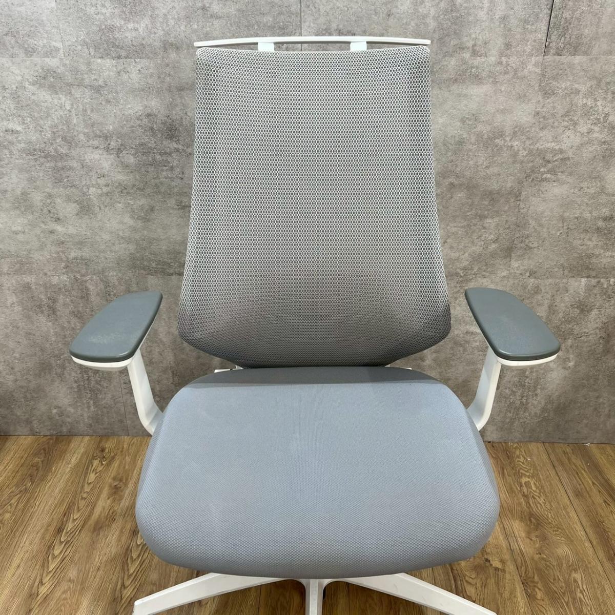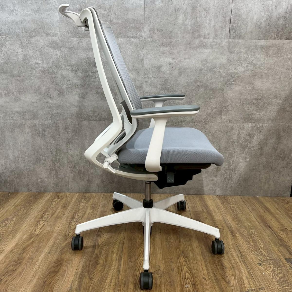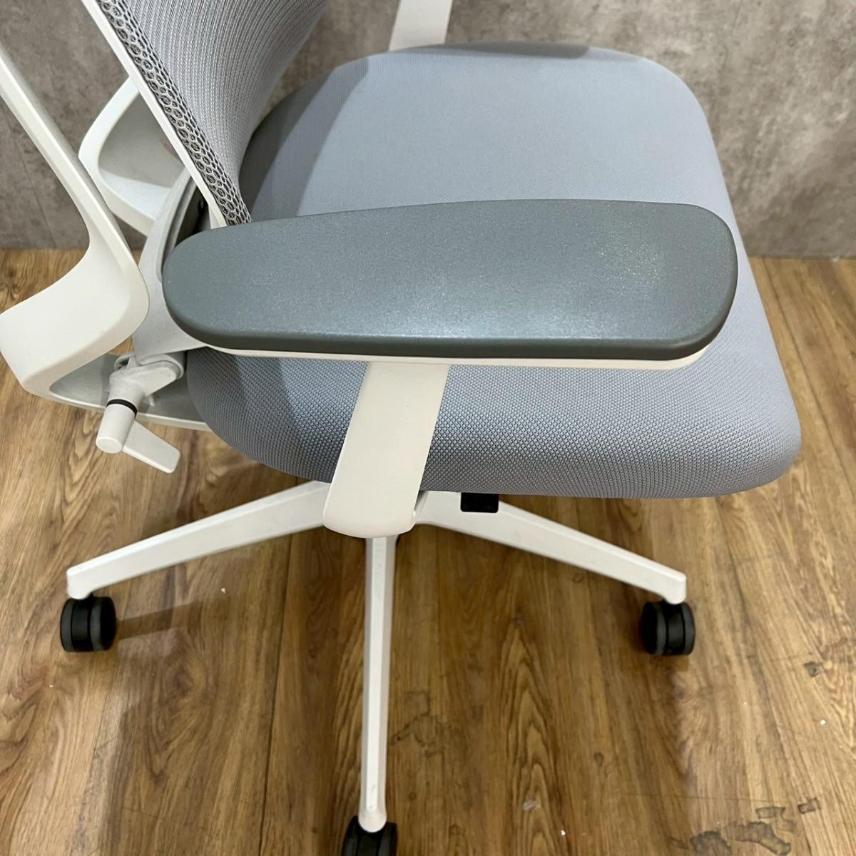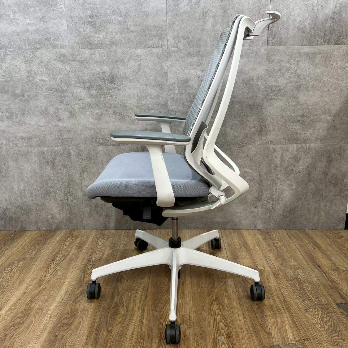 ★コクヨ製 デュオラ ホワイトグレー ホワイトグレーフレーム 肘付き ハイバック 背面メッシュ 樹脂脚 アジャスタブル※可動肘 二重フレーム構造がもたらすしなやかで美しい背もたれ機能! 簡易操作で自分に合った姿勢をサポート! 肘付きハイバックチェア!!
