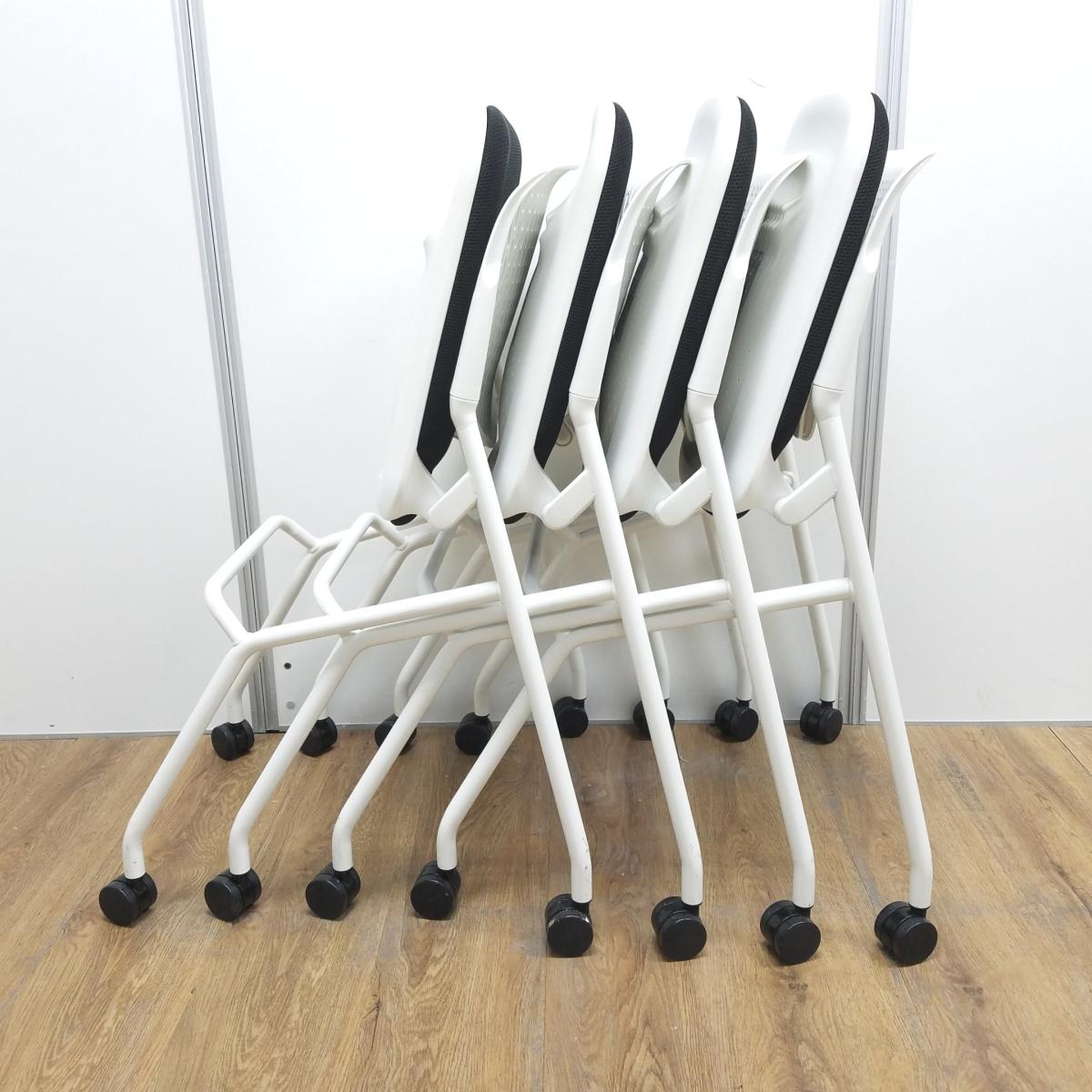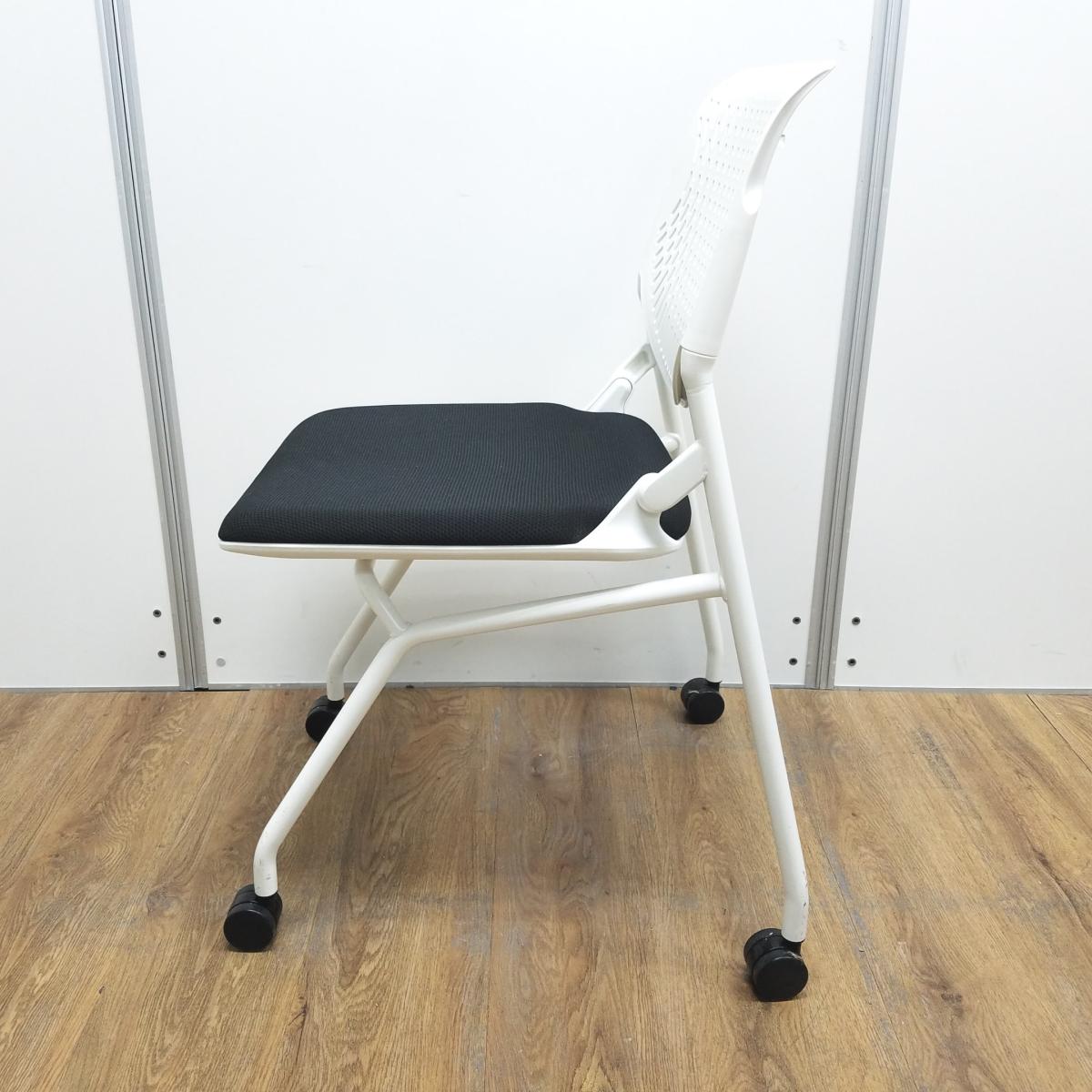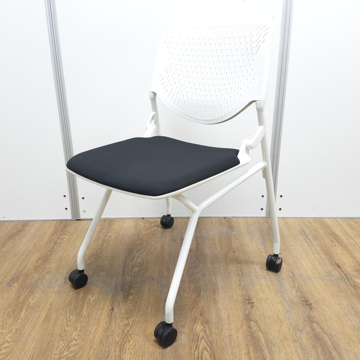 ★【T10】【商品入替のため、残り16脚限り】オカムラ製 ルナシリーズ ブラック ホワイトフレーム 背面ヌードタイプ 背パッドなしタイプ 使わない時は平衡収納! さまざまな場面で活躍するミーティングチェア! セミナーや会議用にオススメ ミーティングチェア ネスティングチェア!!- 京都東寺店