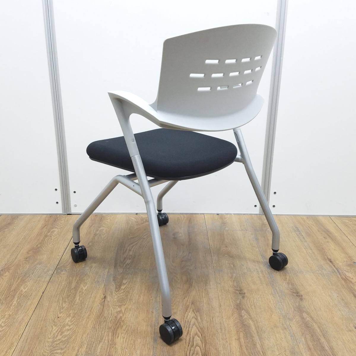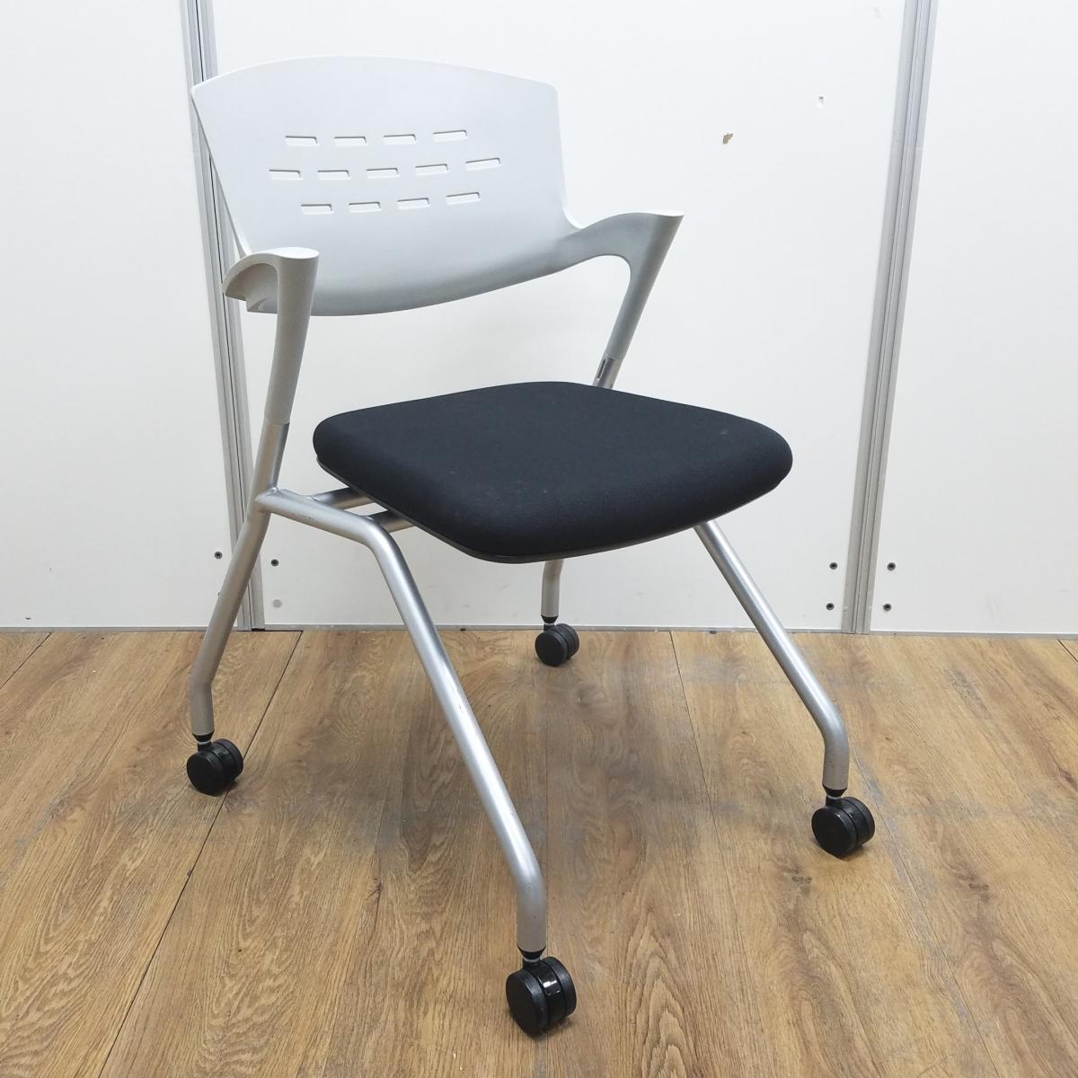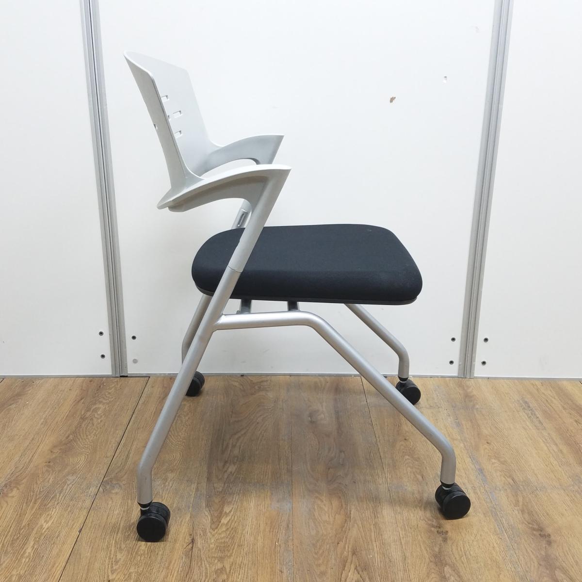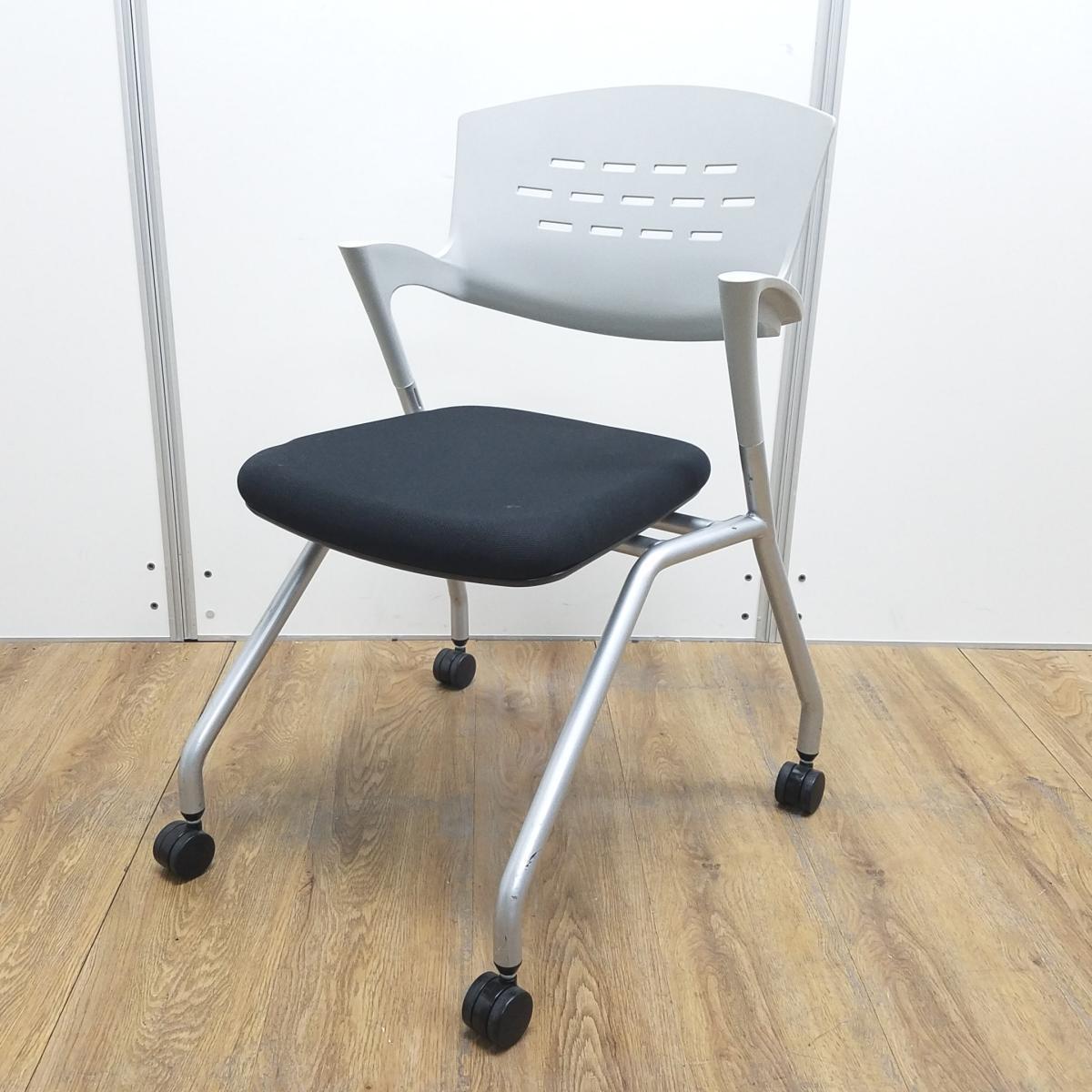 【T9】【商品入替のため、在庫限り】【4脚セット!!】イナバ製 OM-280 ライトグレーxブラックのツートンカラー 固定肘 背面樹脂タイプ キャスター付 会議室、共有スペースなどに使える多目的チェア! 平衡に収納できるネスティングタイプ! ミーティングチェア ネスティングチェア!!- 京都東寺店