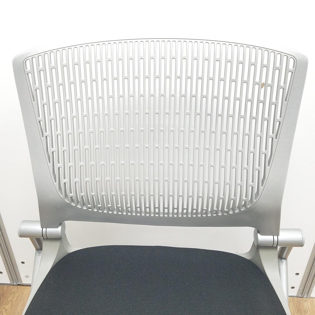 ★【K10】【K9】【訳あり品:カバー不足】【商品入替のため、残り1脚限り】オカムラ製 グラータ グレーxブラック 背面樹脂メッシュ スリット構造のシェルがワーカーを軽やかに受け止める! 肘無しミーティングチェア ネスティングチェア!!※保障対象外品になります。- 京都東寺店