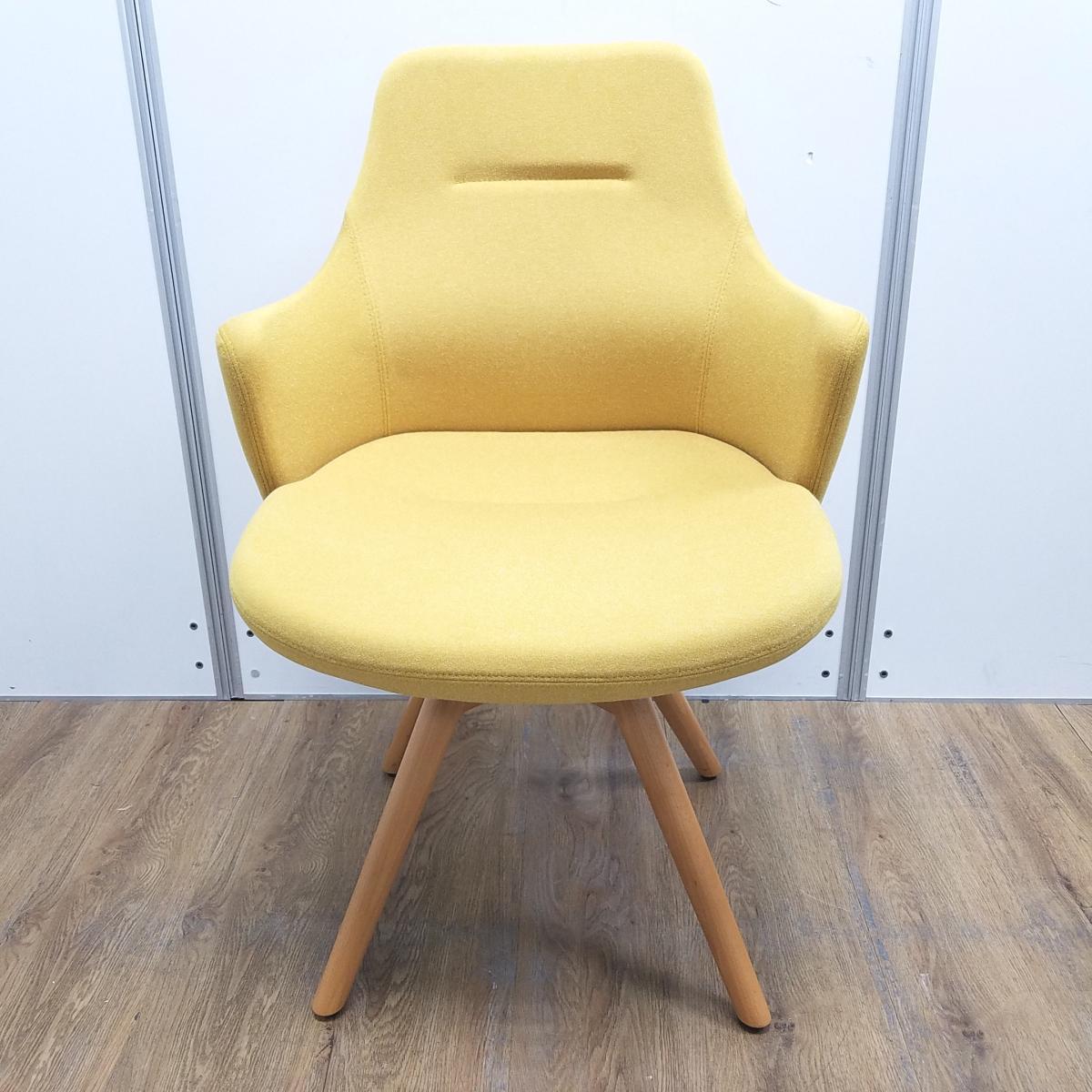 ★【T10】【訳あり品:座面回転不可】【商品入替のため、残り1脚限り】オカムラ製 ライブス(Lives) イエロー 木製脚 オカムラの新シリーズ! 働きやすく、居心地の良いオフィスへ! カジュアルかつ柔らかなデザインのライブスチェア入荷! 肘付 ミーティングチェア ローバック ワークチェア!!※訳あり商品のため、保障対象外品になります。