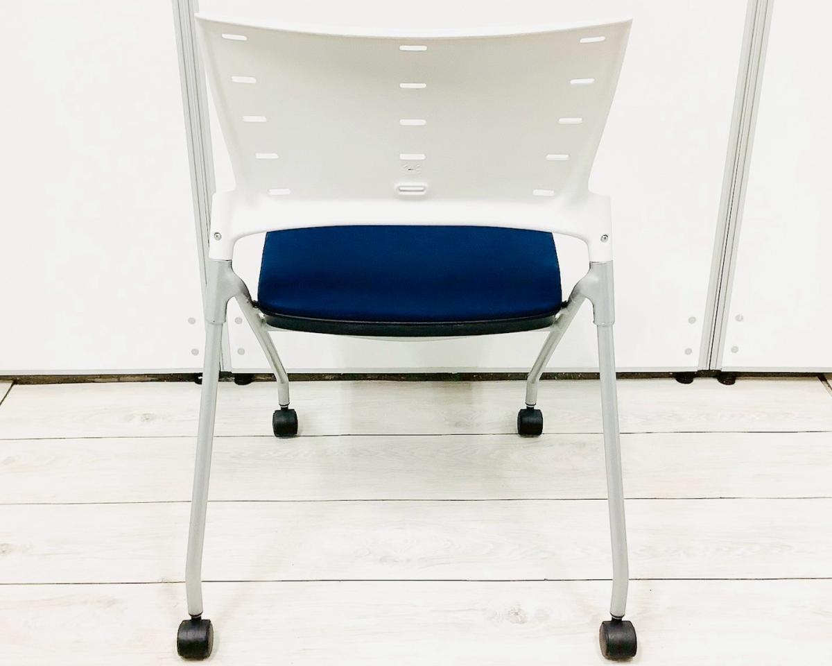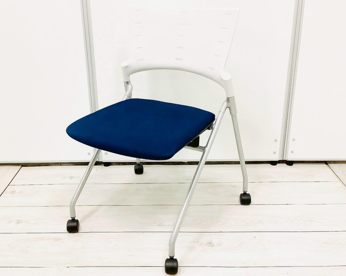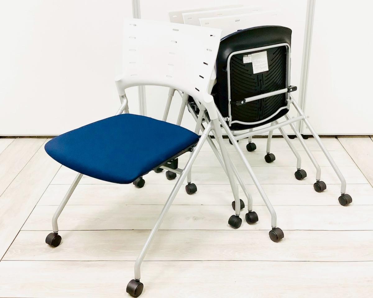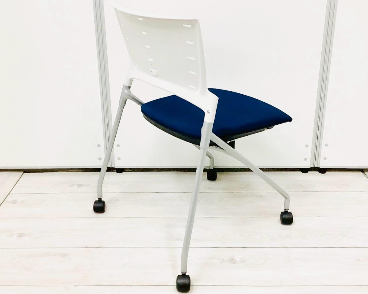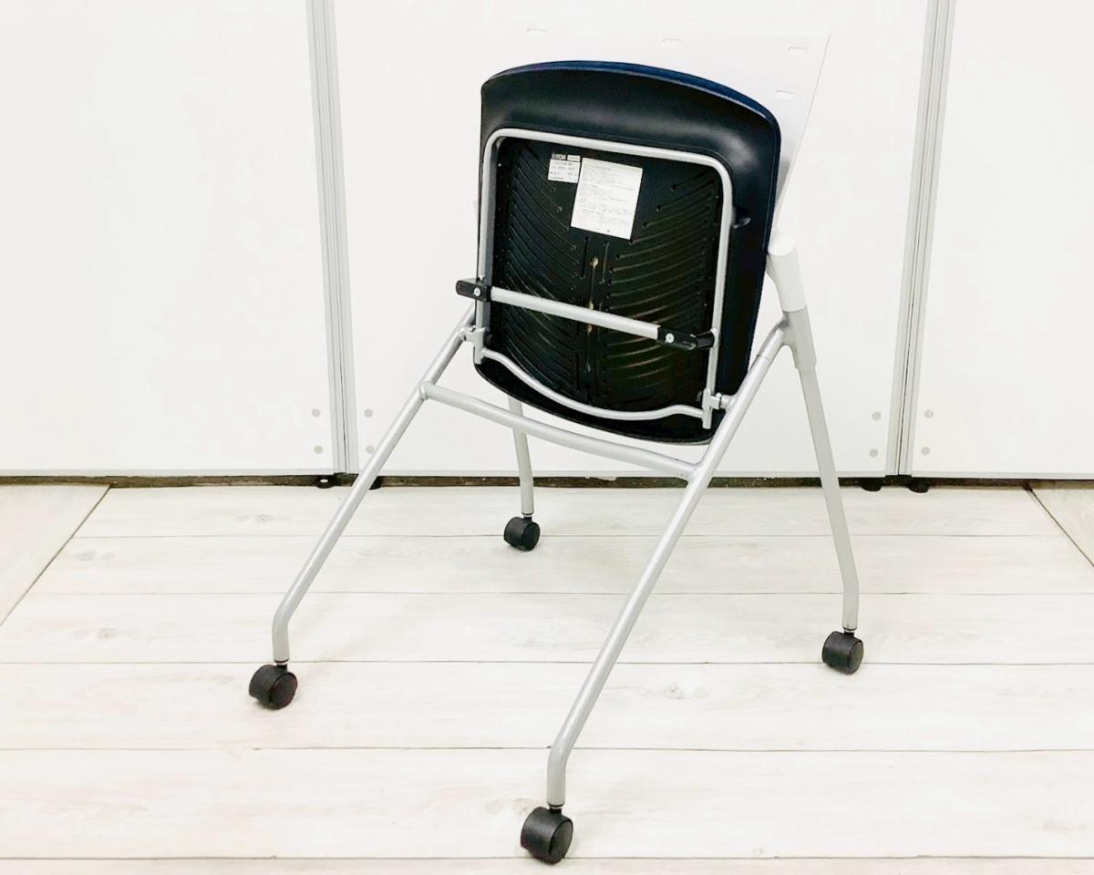 【セミナーや会議用にオススメ!平行ネスティングで省スペース化!】■イトーキ製 マノス ネスティングチェア ■背パッド付 キャスター付き ■ネイビーブルー オフィスバスターズ心斎橋店 ロット在庫