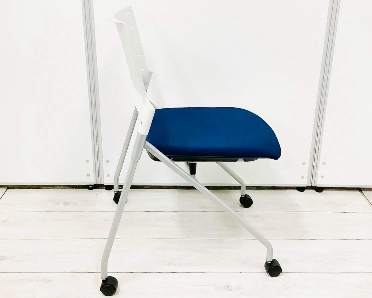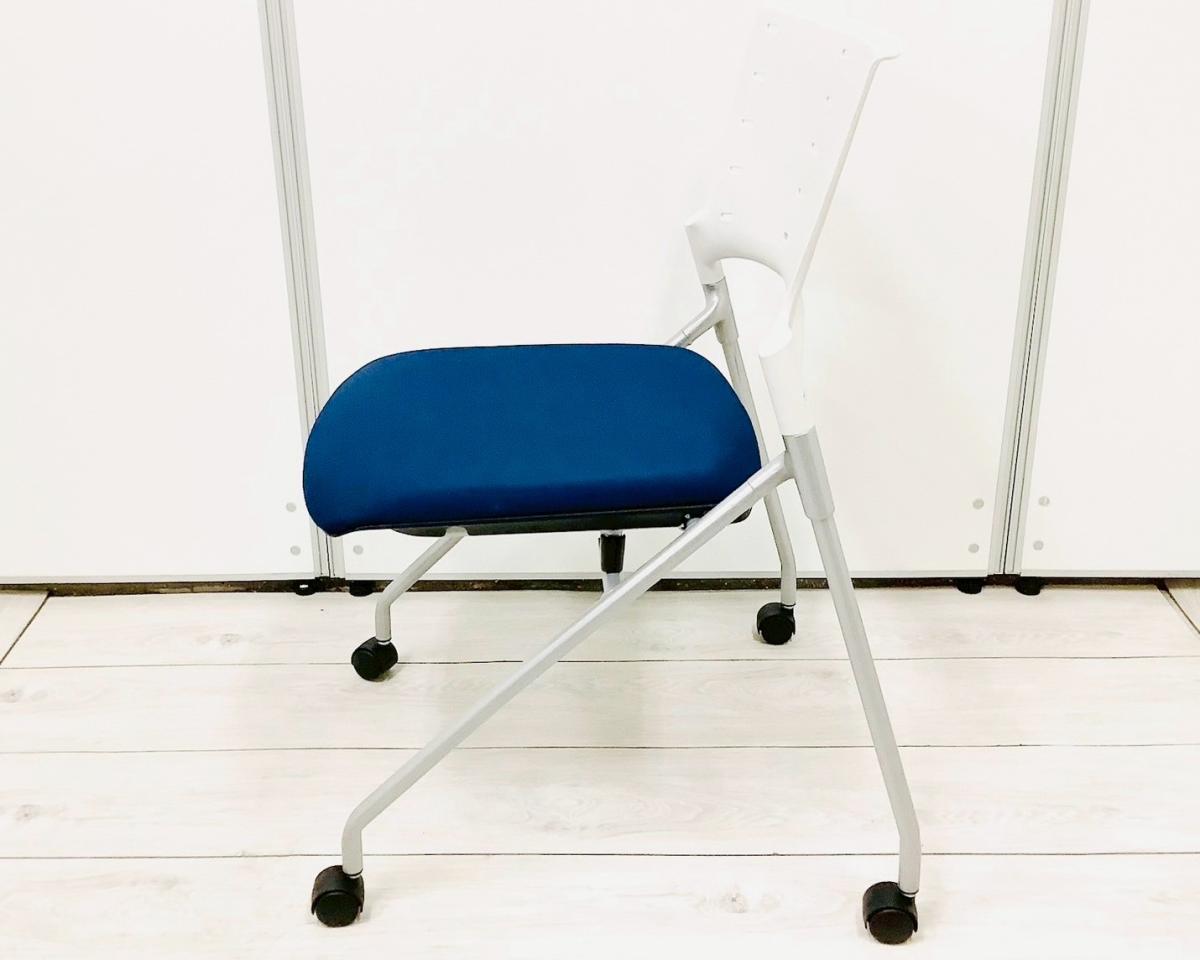 【関東倉庫在庫品】【フレキシブルに使える!平行ネスティングで省スペース化!】■イトーキ(ITOKI)製 マノス(MANOSS) ネスティングチェア ミーティングチェア ■背パッド付 ■キャスター付 ■ブルー【弊社使用欄:A01014525】【ECBMC】