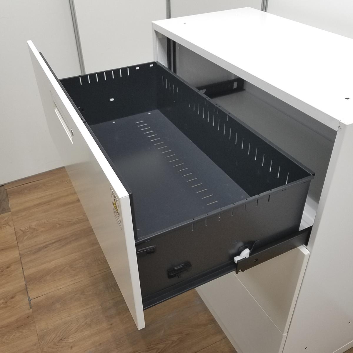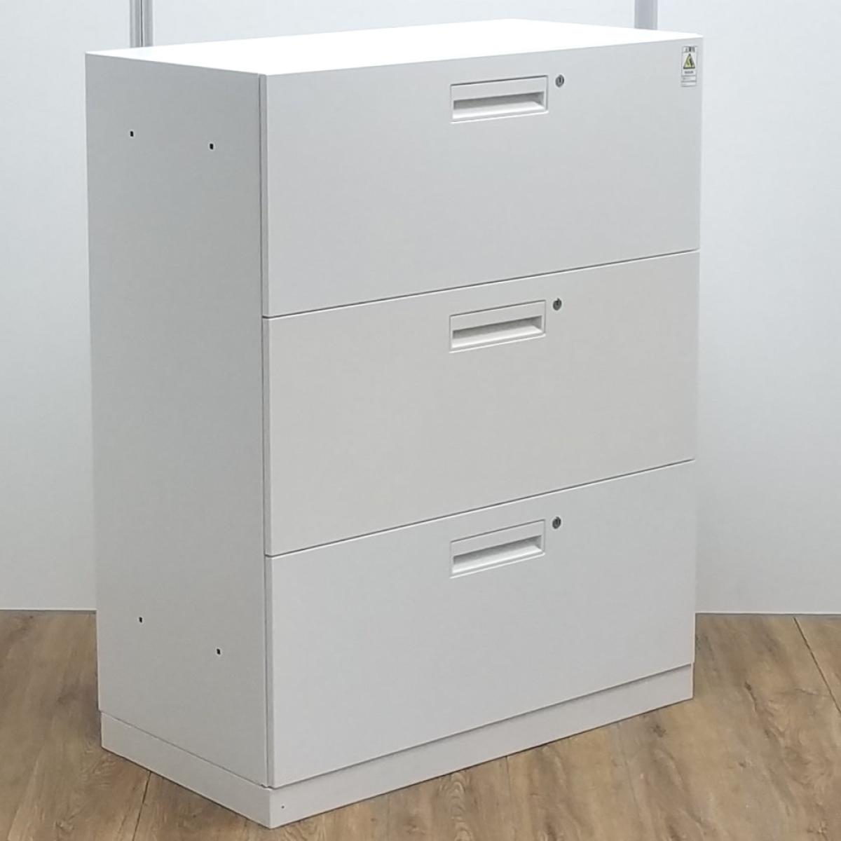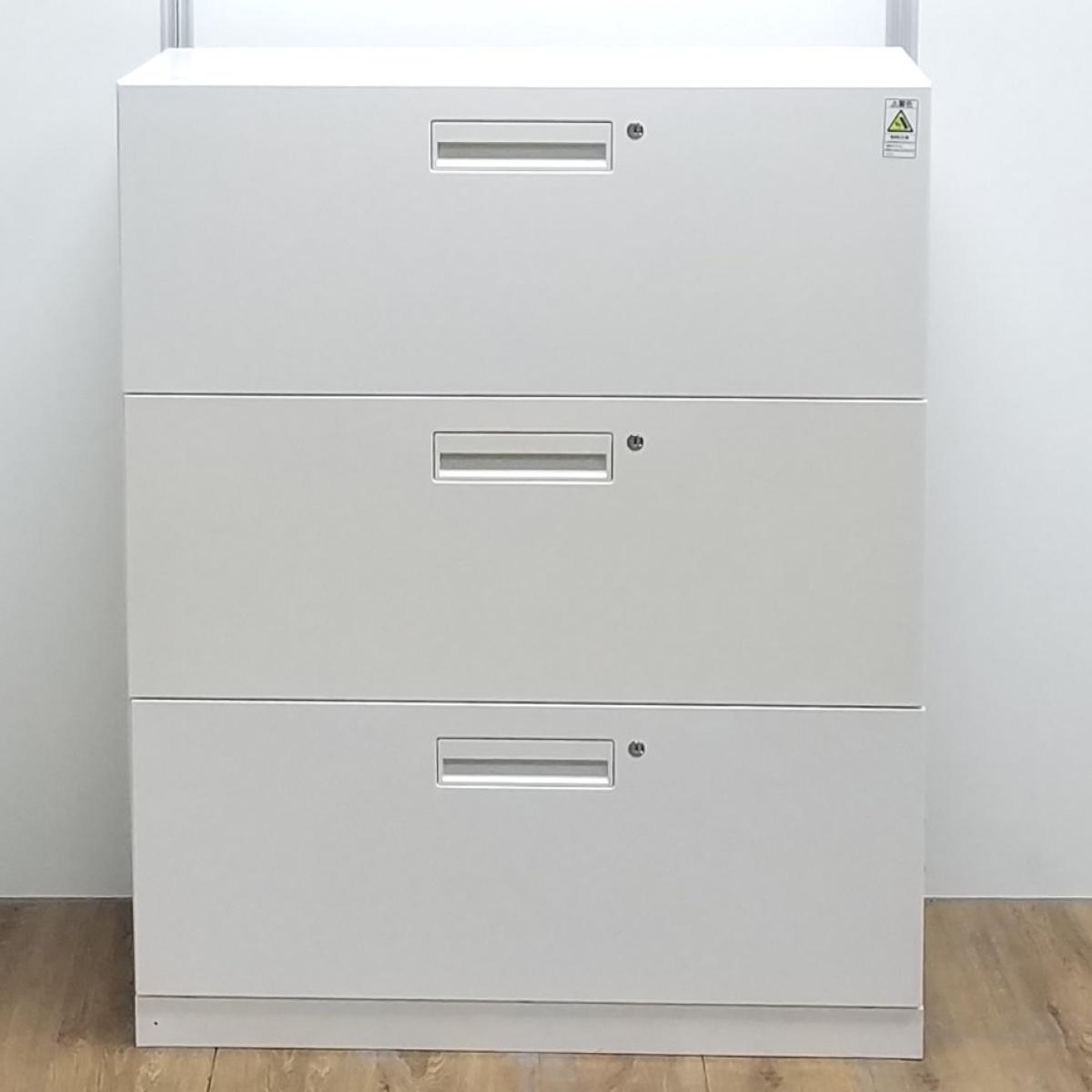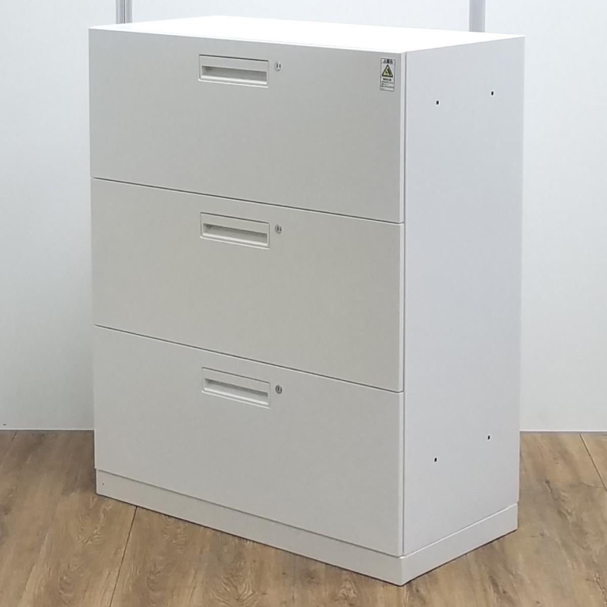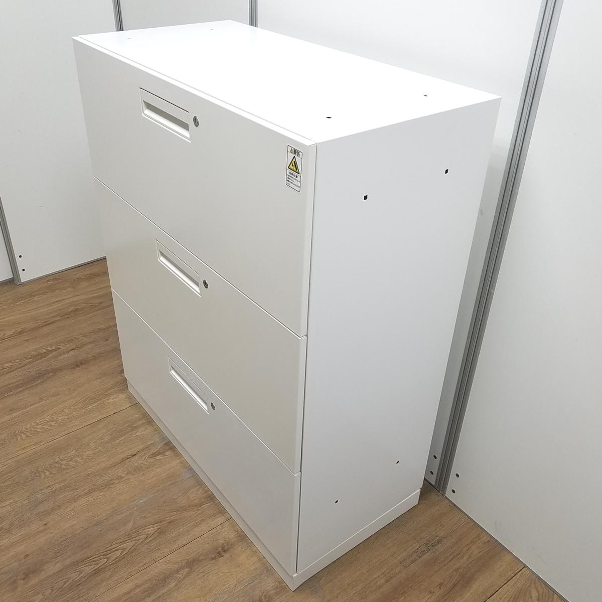 【T8】【商品入替のため、残り1台限り】コクヨ製 エディア ホワイト 注意※各段シリンダー 納量抜群の3段ラテラル書庫! A4書類が大量に収納可能! ローキャビネット 3段ラテラル!!- 京都東寺店