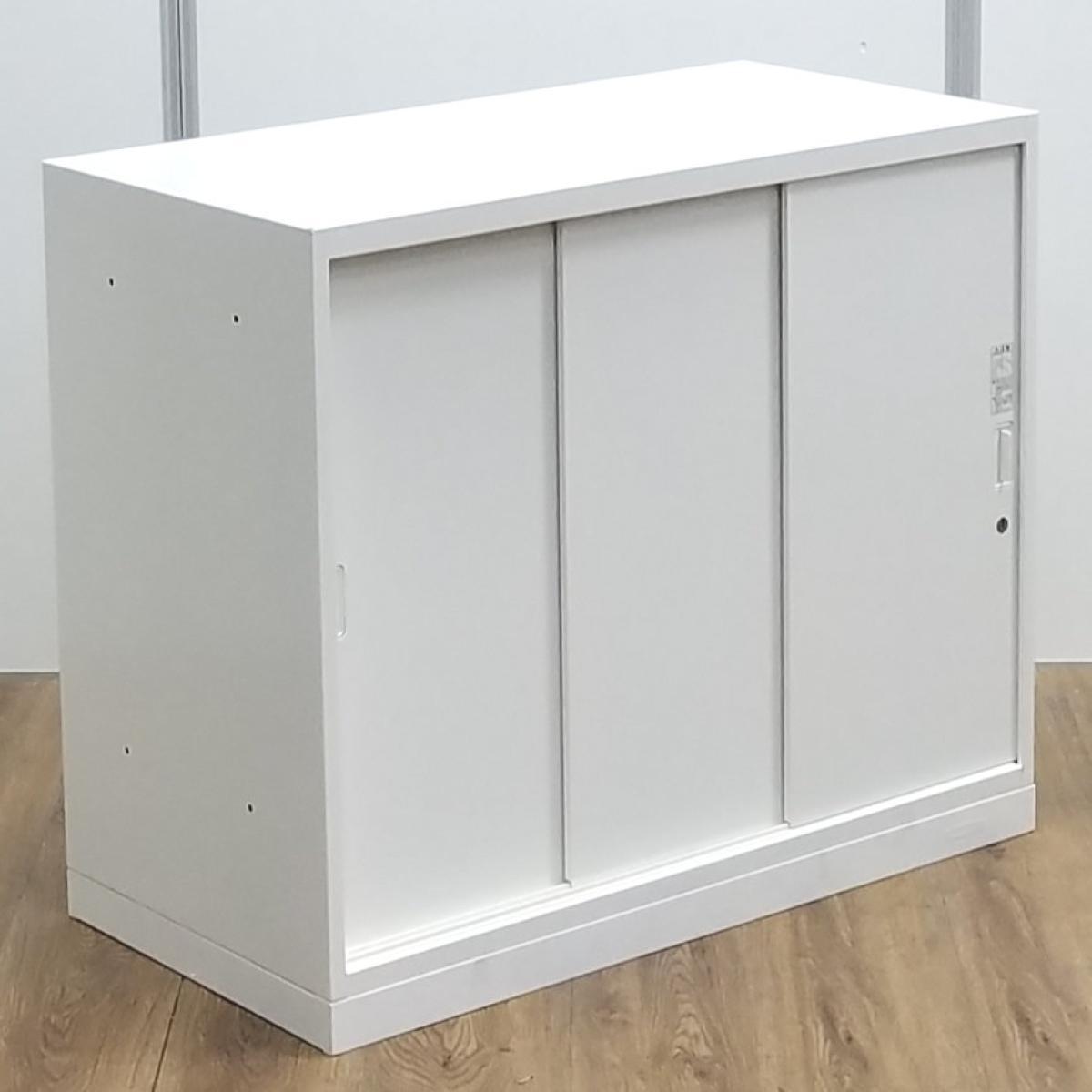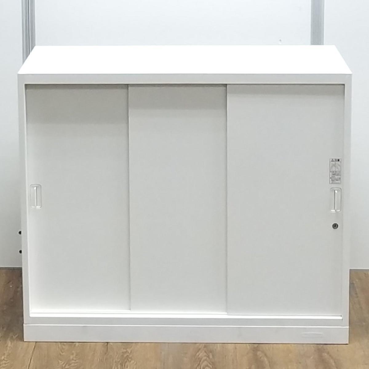 オカムラ製 人気レクトラインシリーズ ホワイト シリンダー W800xD450XH1050 3枚引戸 ※ベースなし 3枚引き違い書庫!!