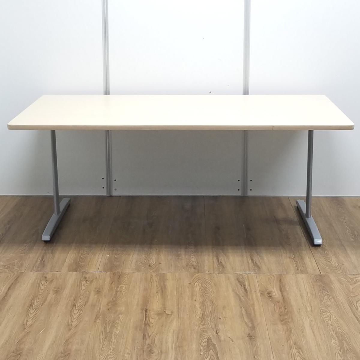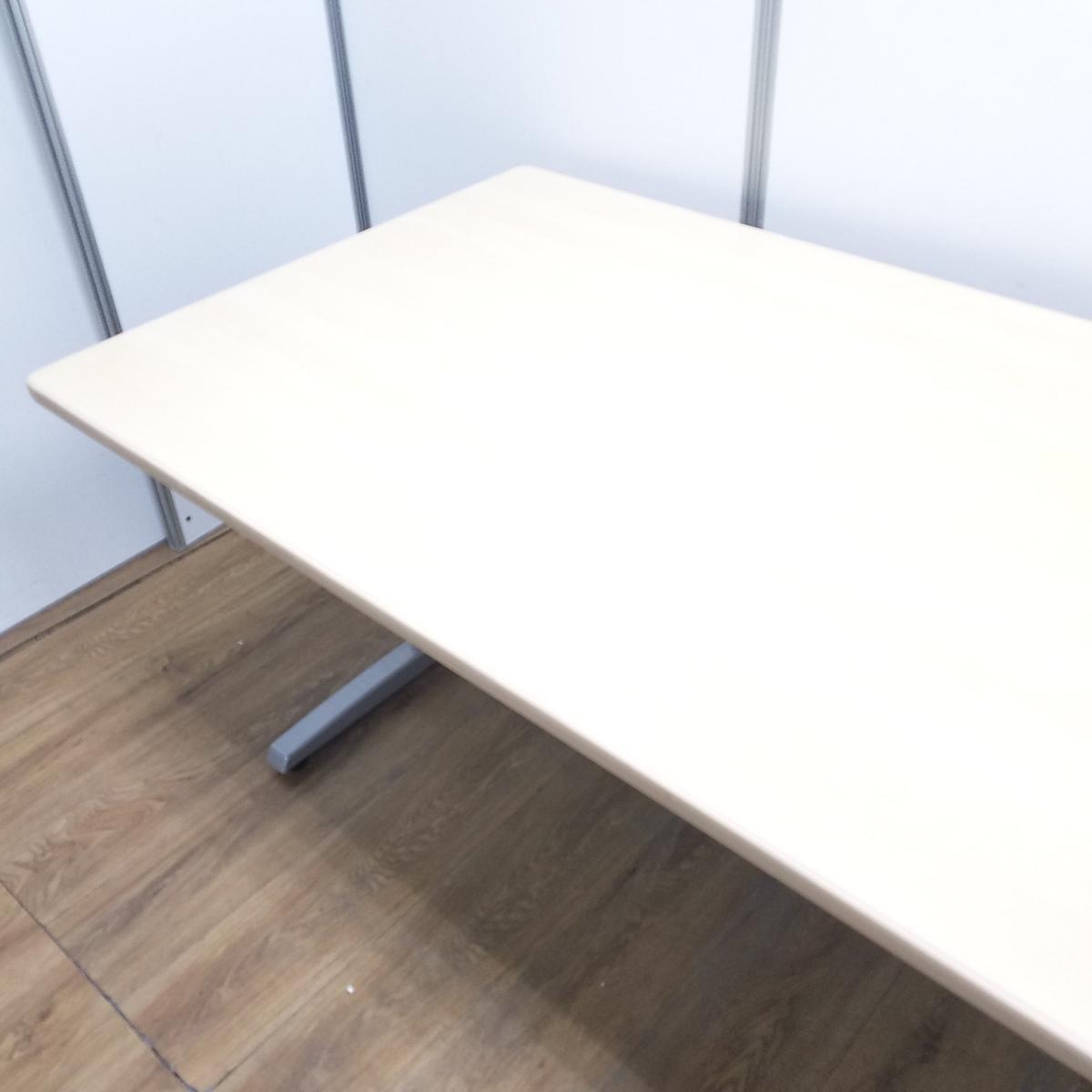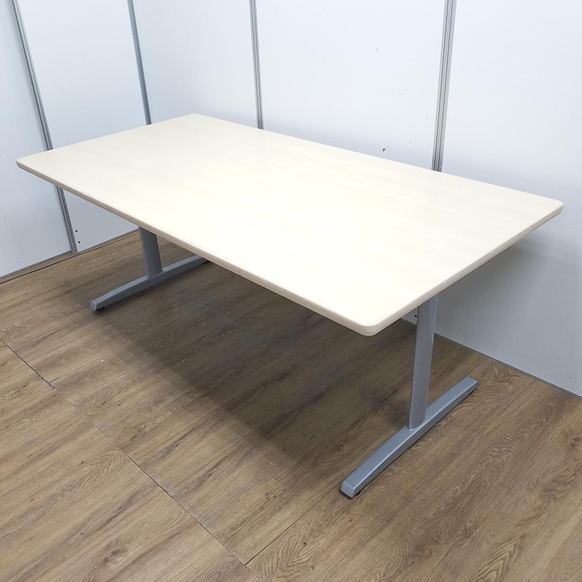 【T9】【天板キズあり】【商品入替のため、残り1台限り】オカムラ製 8177 ナチュラル W1800xD900xH700サイズ T字脚:シルバー ミーティングテーブル オフィスを明るく魅せる木目調カラー! カドに丸みのある売れ筋のデザイン! 4人~6人用の会議・打合せ用のテーブルとして最適! W1800ミーティングテーブル!!- 京都東寺店
