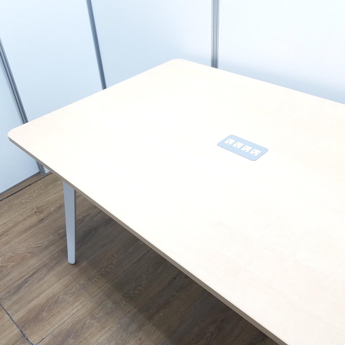 【T9】【商品入替のため、残り1台限り】ウチダ製 ノティオ(notio)シリーズ ナチュラル 配線口 4本脚 W1400/D900/H725サイズ 2~4名様の打ち合わせ・会議にオススメサイズ! W1400ミーティングテーブル!!- 京都東寺店