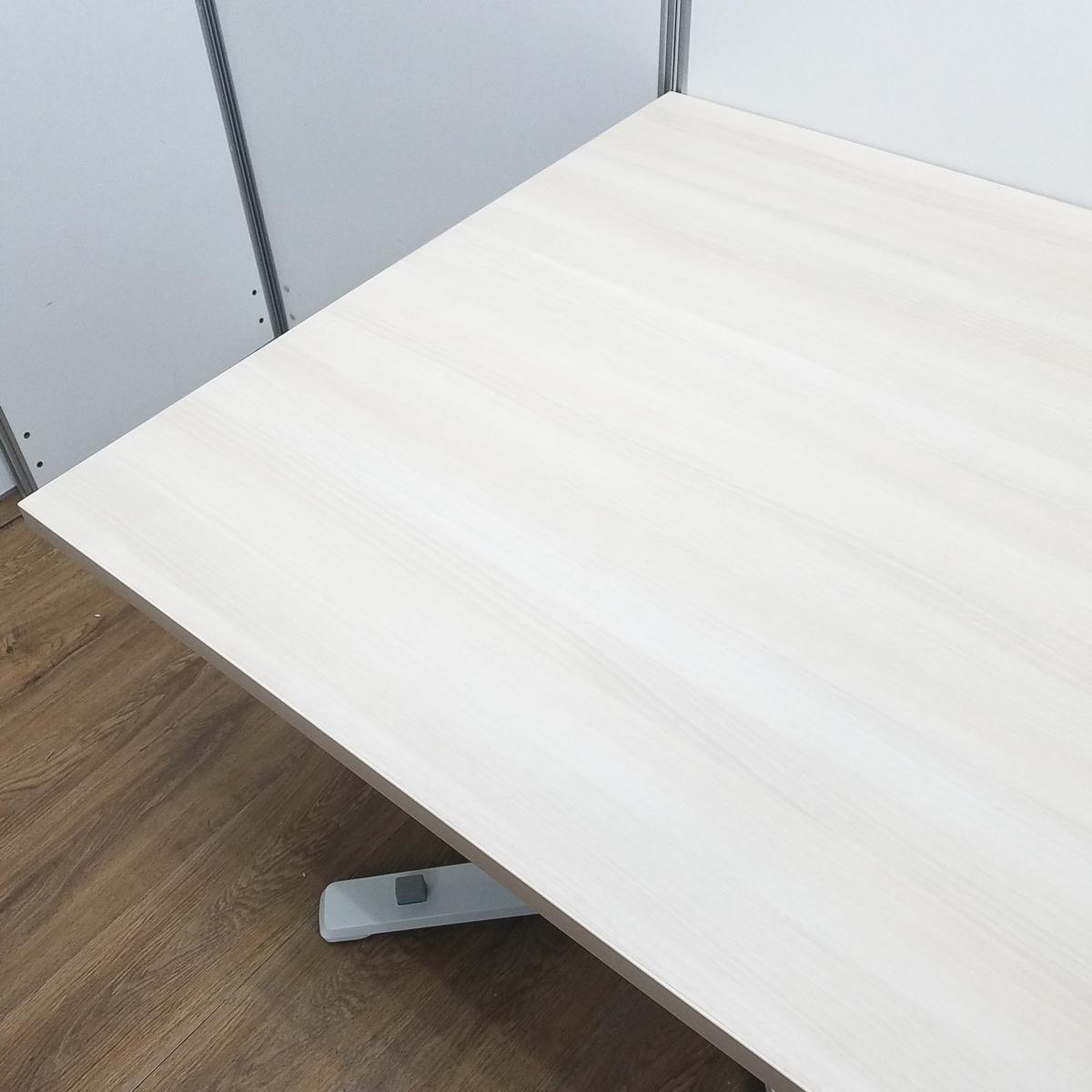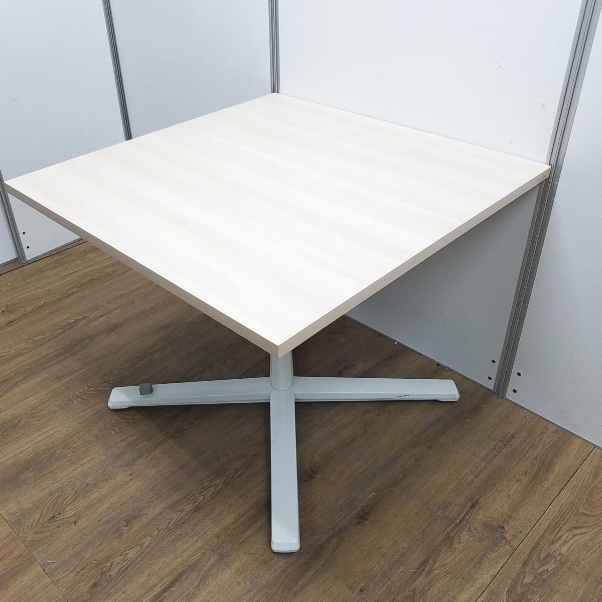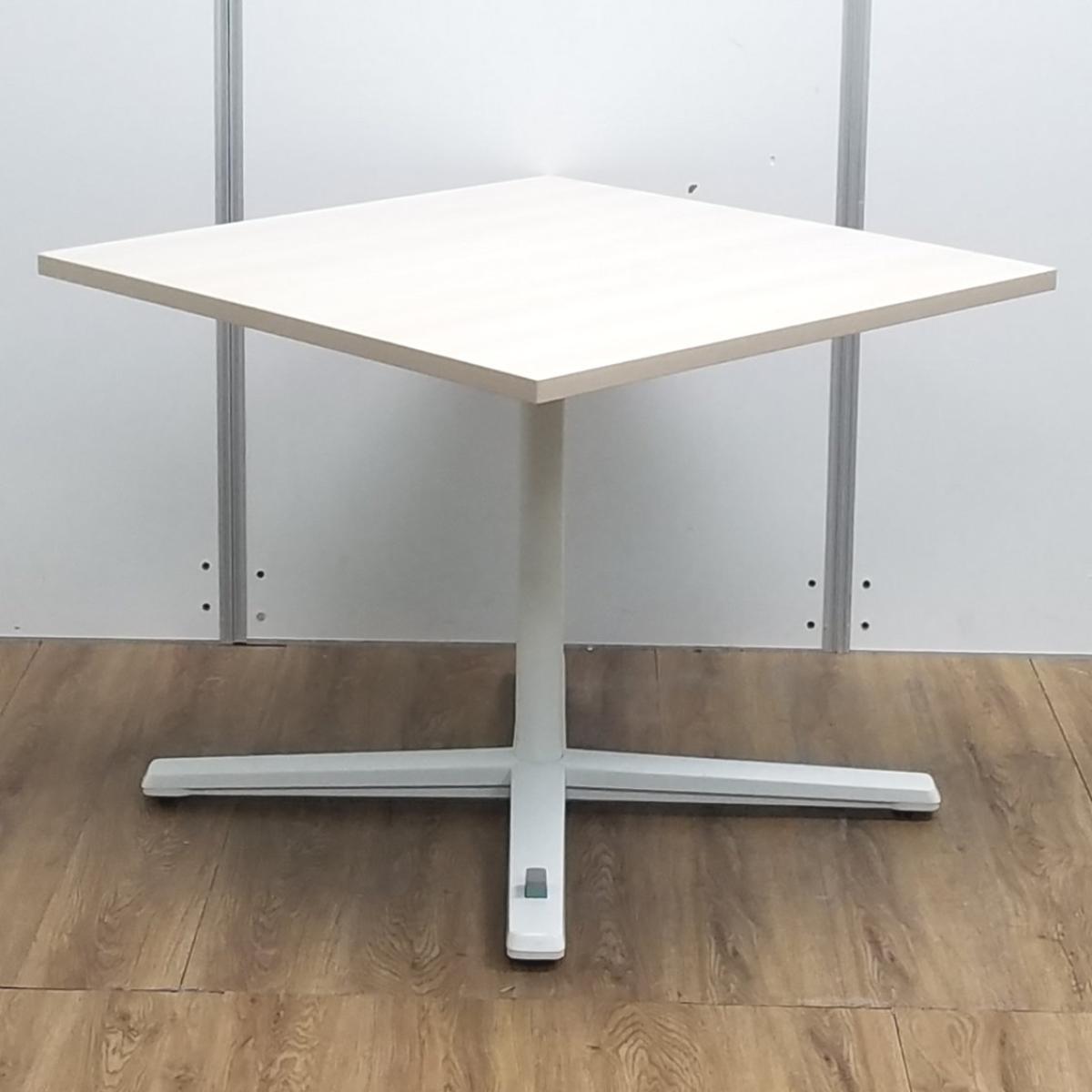 【K9】【商品入替のため、残り2台限り】オカムラ製 ライブス ナチュラ 角テーブル ミーティングテーブル カフェテーブル W900xD900xH720サイズ ホワイト脚 キャスターロック 木目ナチュラル天板のカフェ風テーブル! リフレッシュスペースなどに! 角テーブル!!- 京都東寺店