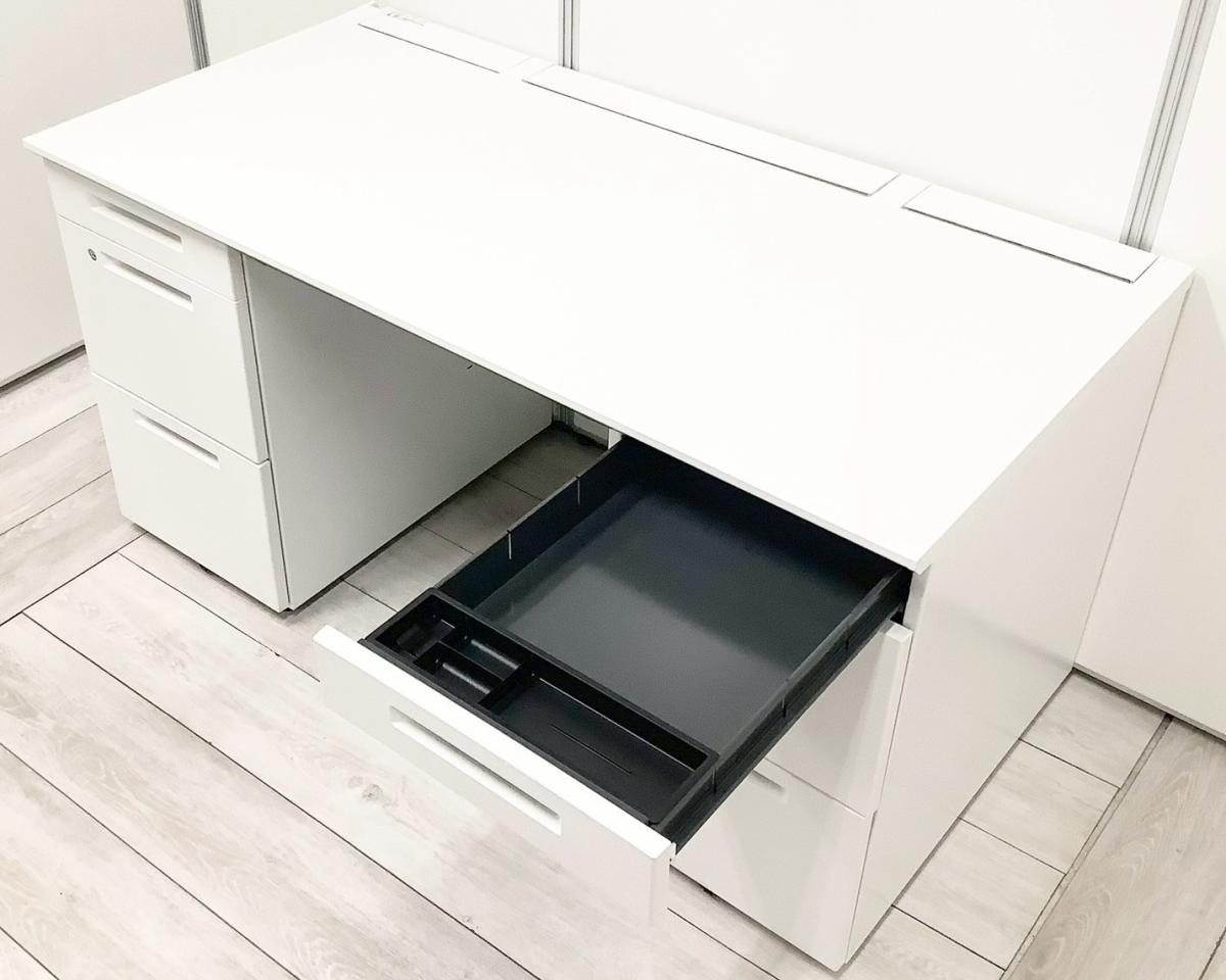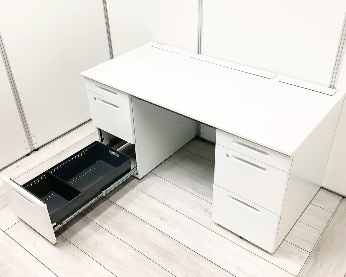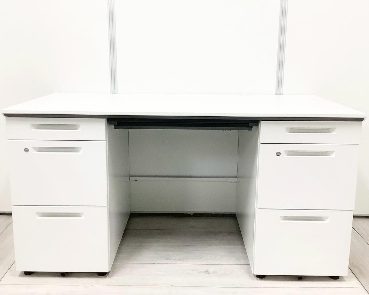 【T11】【商品入替のため、残り4台限り】コクヨ製 アイエス(IS) ホワイト 両袖 デスク W1400xD700xH720サイズ シリンダー 収納スペース充実! 机上をスッキリ整理! 幅広いワークスペースで上長席にもオススメ! W1400両袖机!!