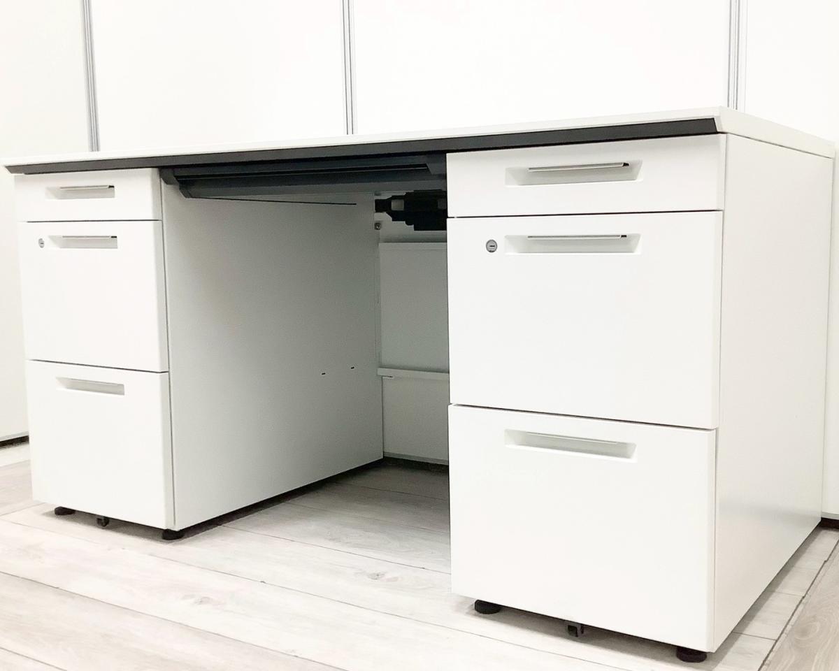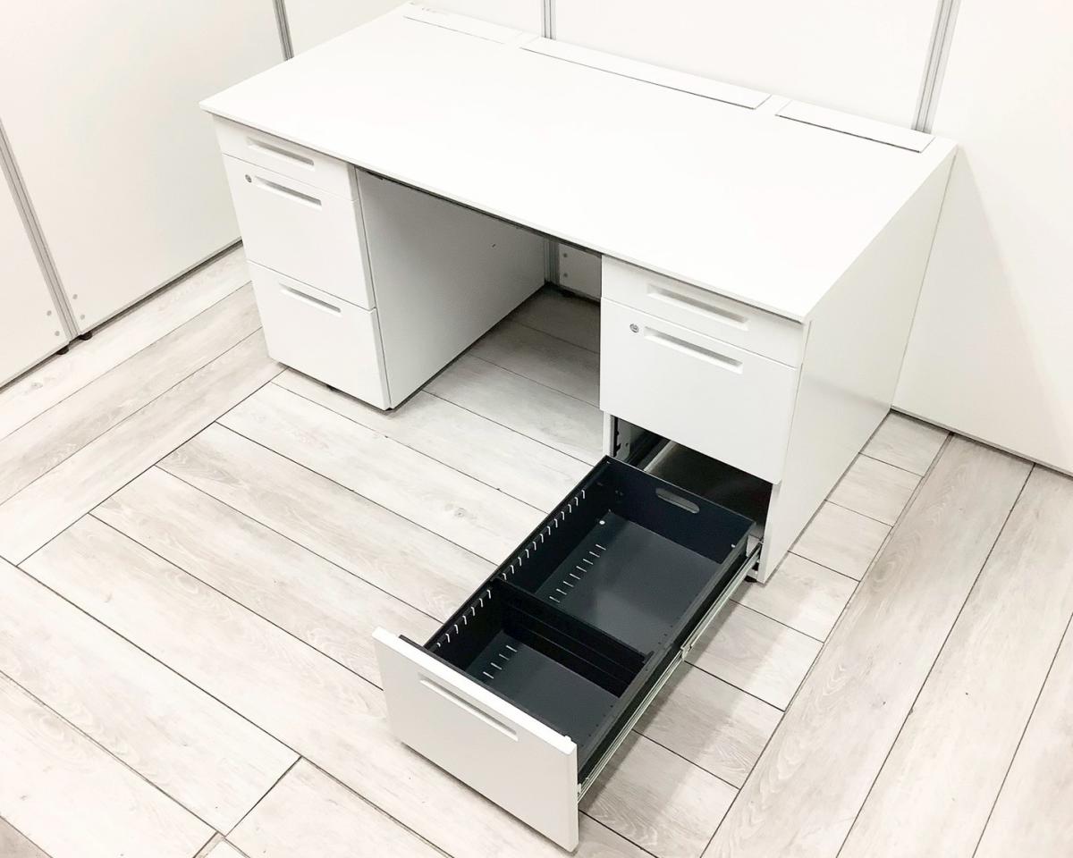 【在庫セール品・1台限定】【T11】■コクヨ(KOKUYO)製 アイエス(iS)シリーズ 両袖デスク W1400mm ■シリンダー錠 ■ホワイト【幅広いワークスペースで上長席にもオススメ! 収納スペース充実! 机上をスッキリ整理!】