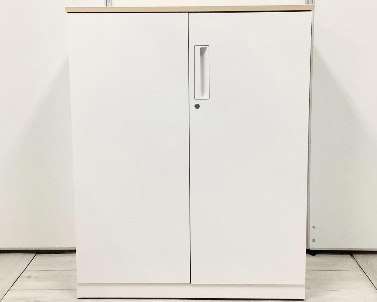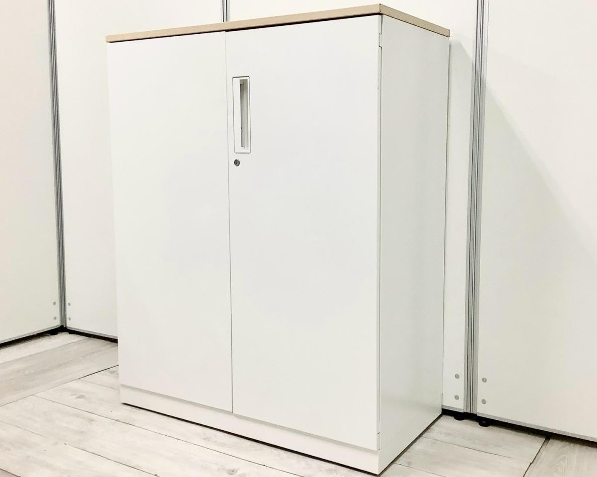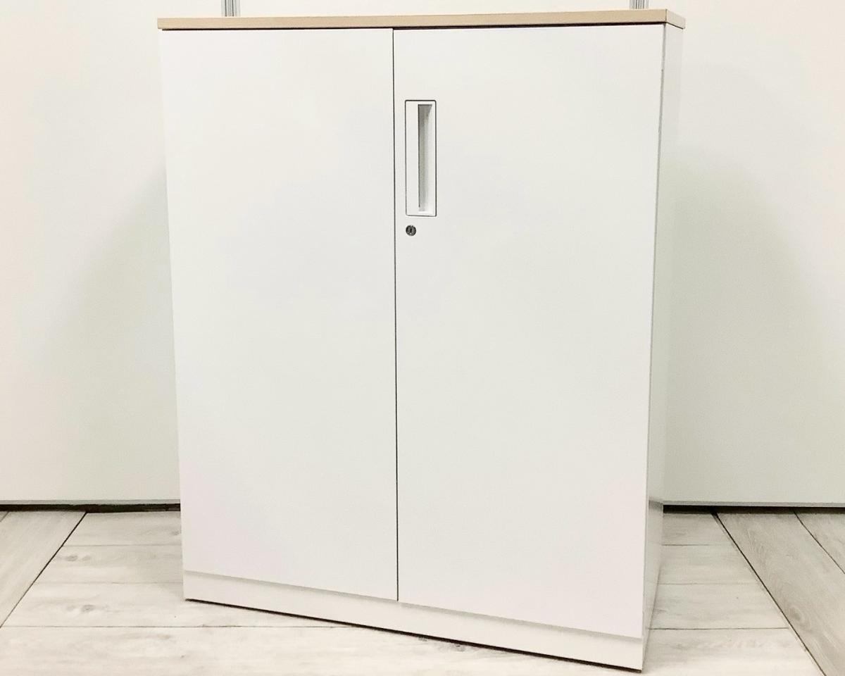 【収納物がひとめで分かる両開き戸タイプ!】■コクヨ(KOKUYO)製 エディア(EDIA)シリーズ 両開き書庫 ローキャビネット H1130㎜ ■天板・ベース付 ■ホワイト ■シリンダー錠