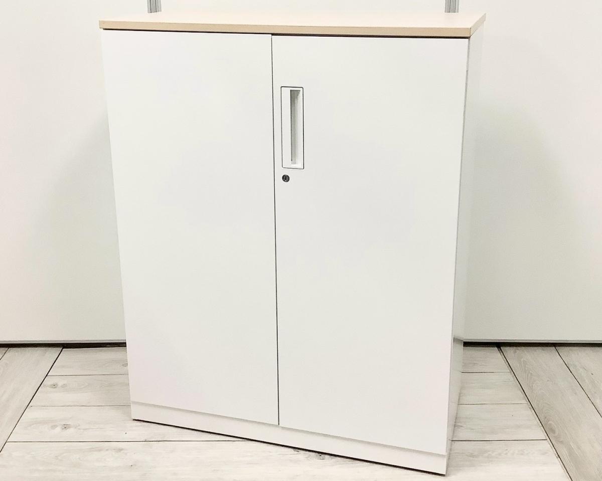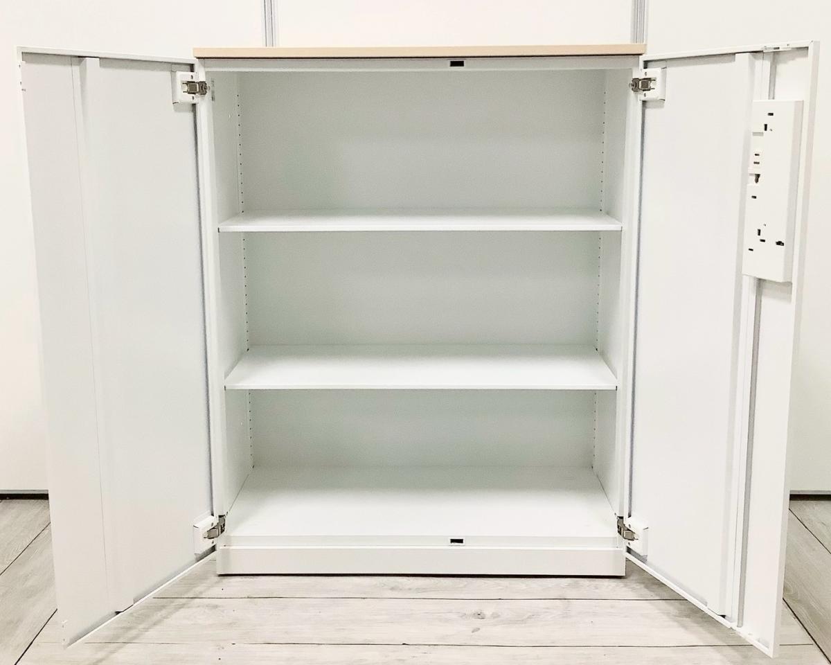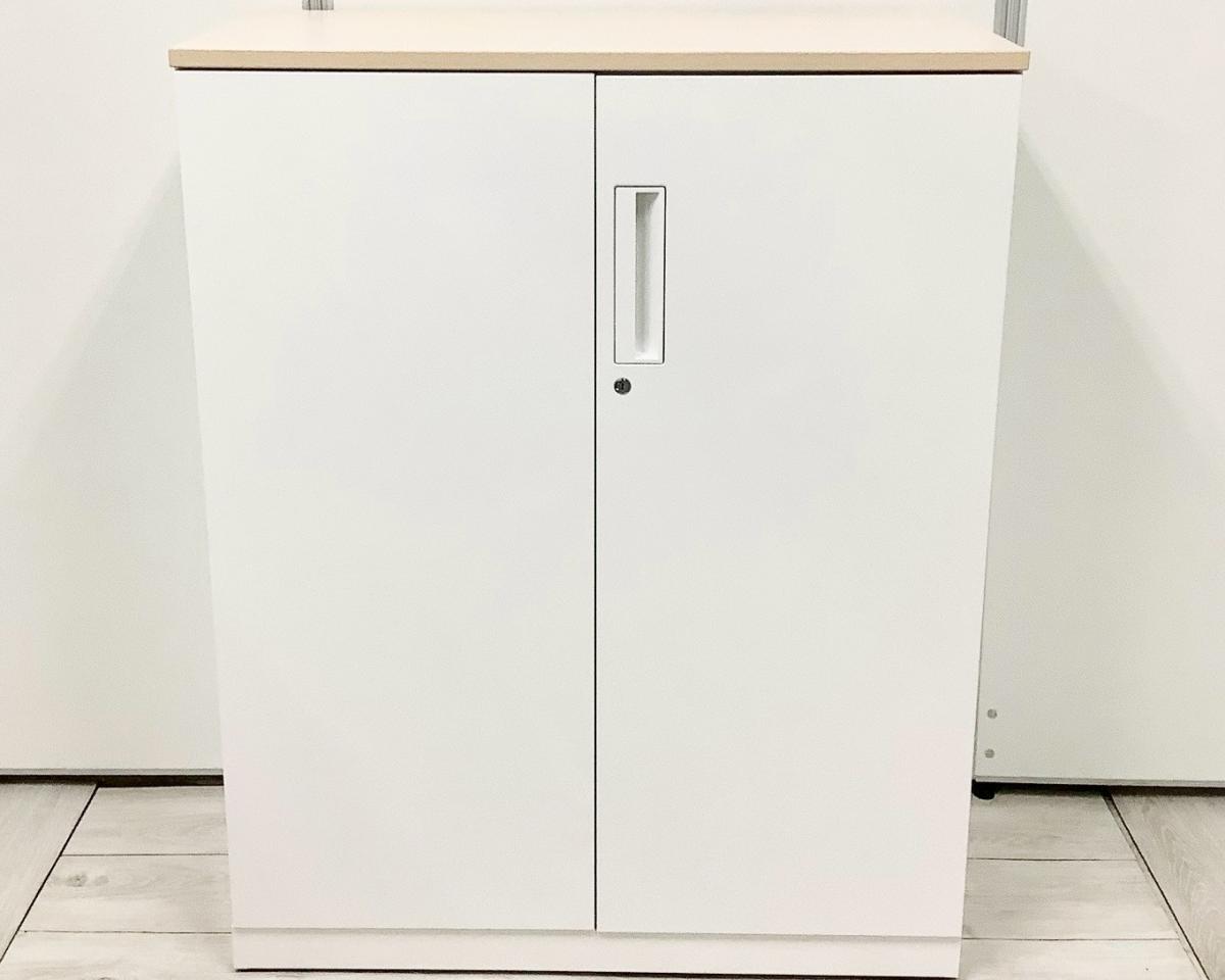 【収納物がひとめで分かる両開き戸タイプ!】■コクヨ(KOKUYO)製 エディア(EDIA)シリーズ 両開き書庫 ローキャビネット H1130㎜ ■天板・ベース付 ■ホワイト ■シリンダー錠