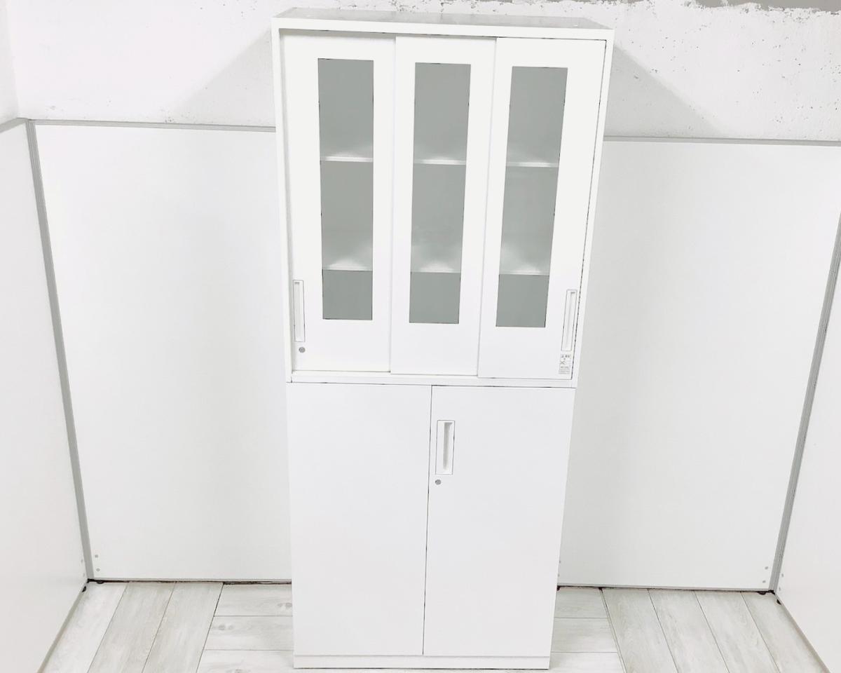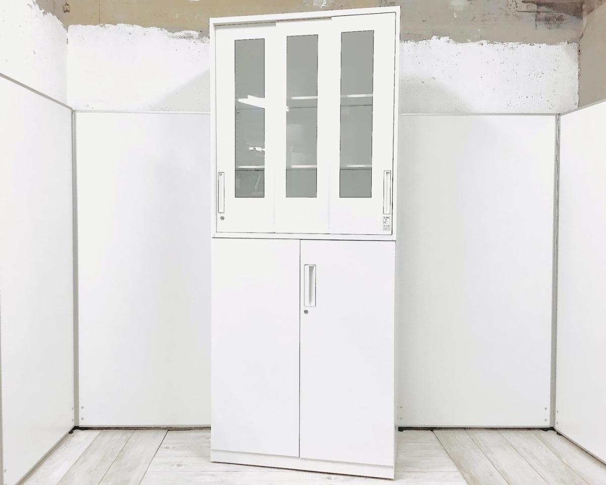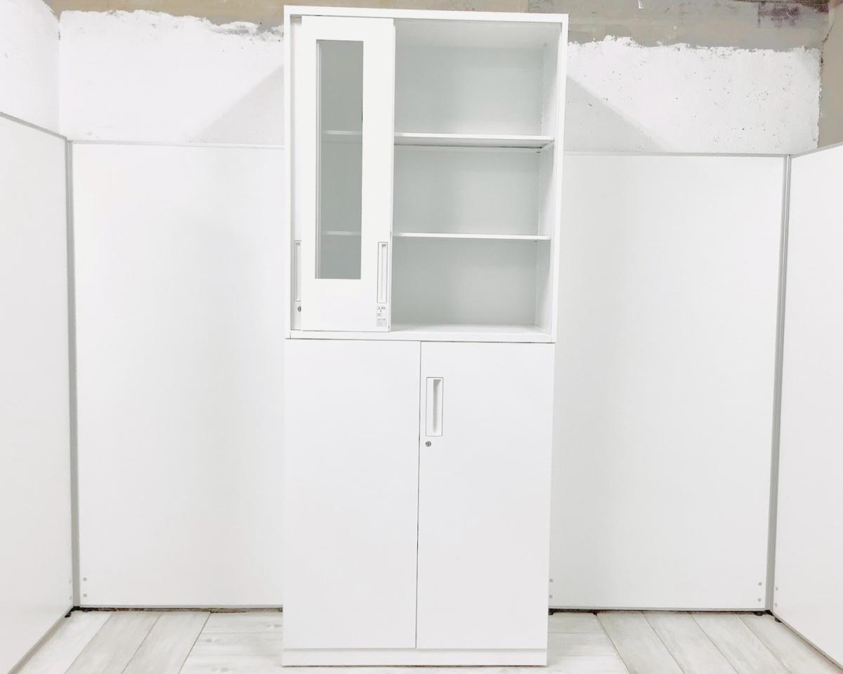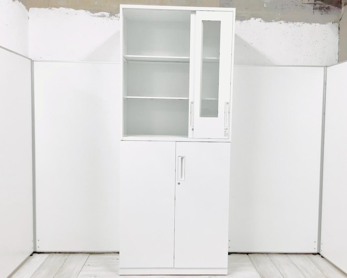 【オフィスの書類をまとめて整理!希少な両開き+引き違い書庫セットが入荷!!】■コクヨ(KOKUYO)製 エディアシリーズ 両開き+引き違い 書庫セット H2015㎜ ■2枚扉 ■シリンダー錠 ■ホワイト【AD】