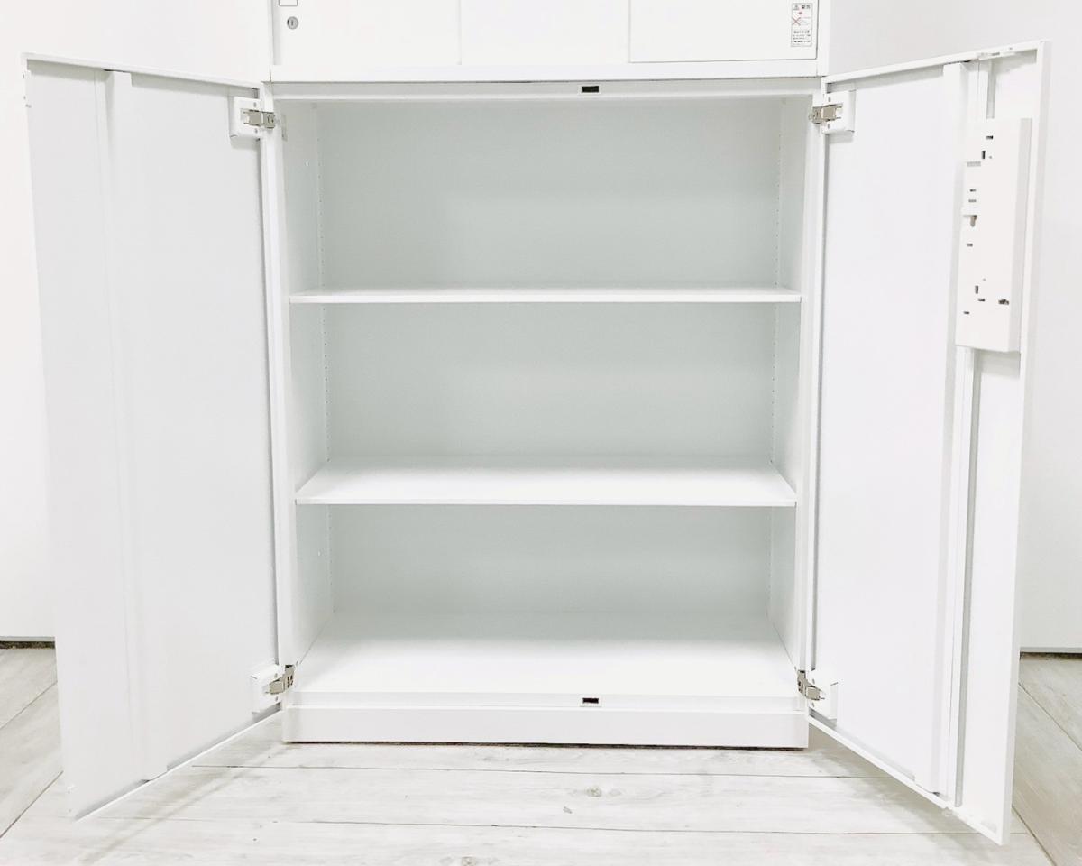 【両開き書庫とクリスタルトレイキャビネットの上下書庫セットの入荷です】 ■コクヨ/エディア/ホワイト 両開き+クリスタルトレー 深型3列11段 計33段