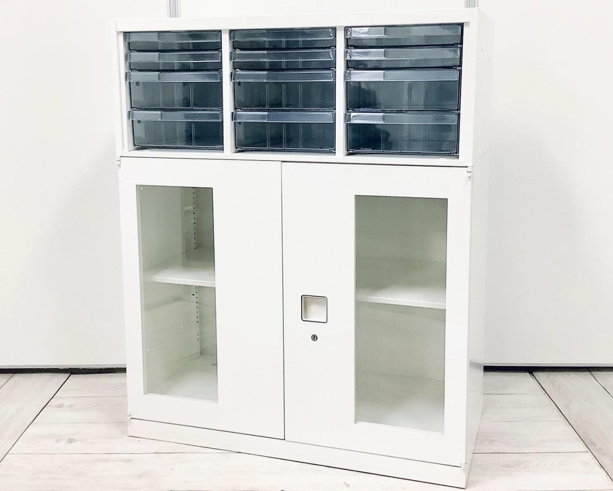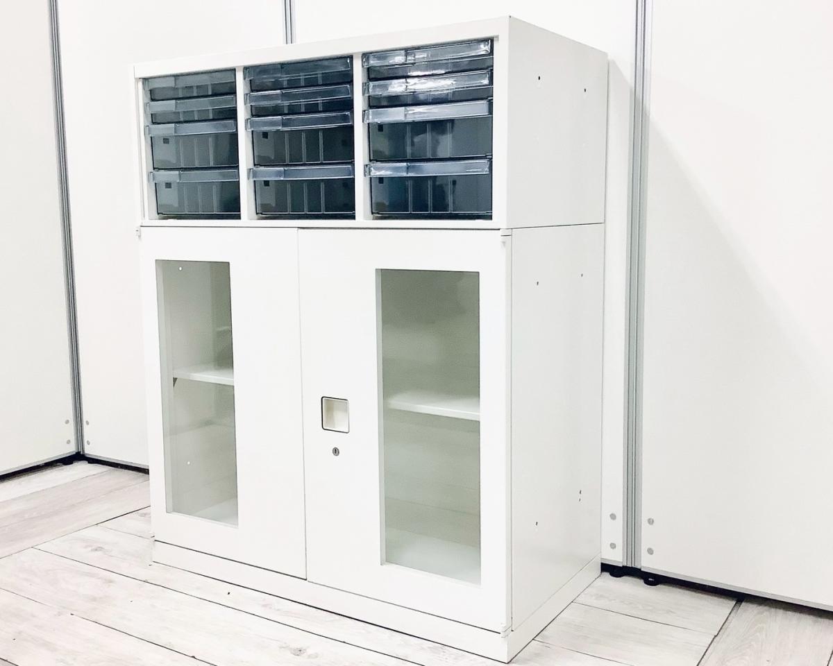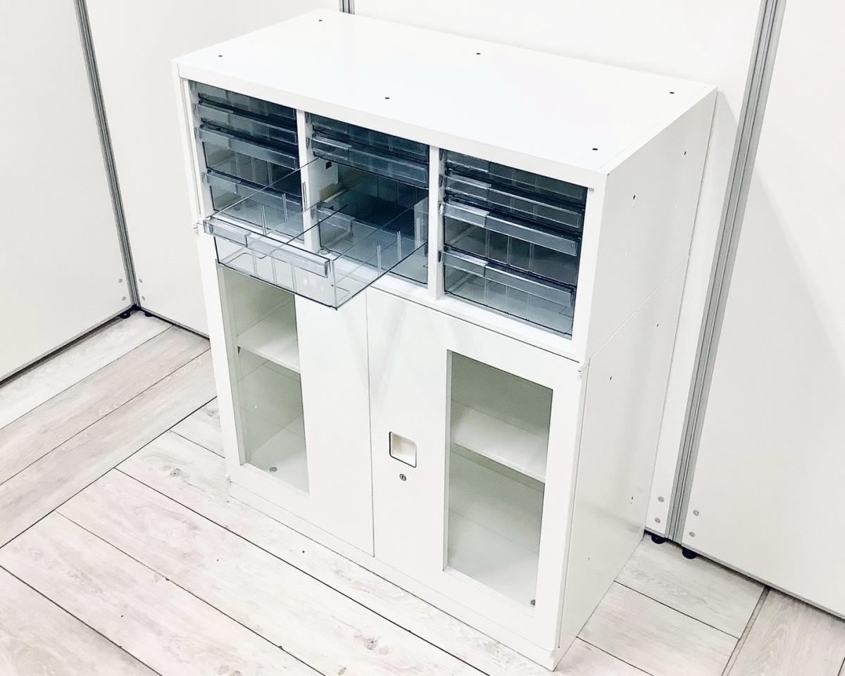 【中古】 レクトライン 4B09AD-ZA75+4B31GF-ZA75 オカムラ/okamura ローキャビネット/クリスタルトレー 537618