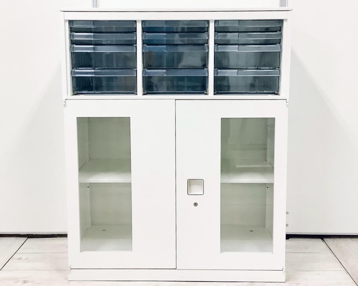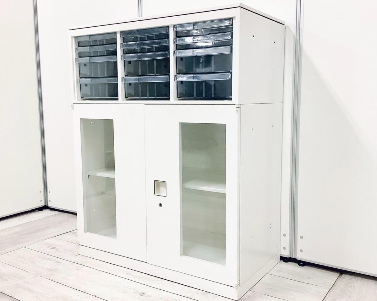 【中古】 レクトライン 4B09AD-ZA75+4B31GF-ZA75 オカムラ/okamura ローキャビネット/クリスタルトレー 537621