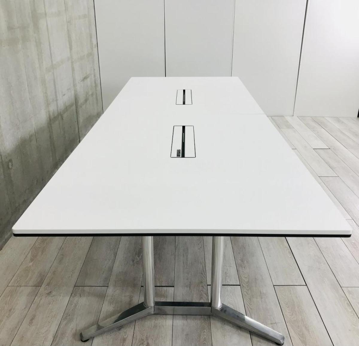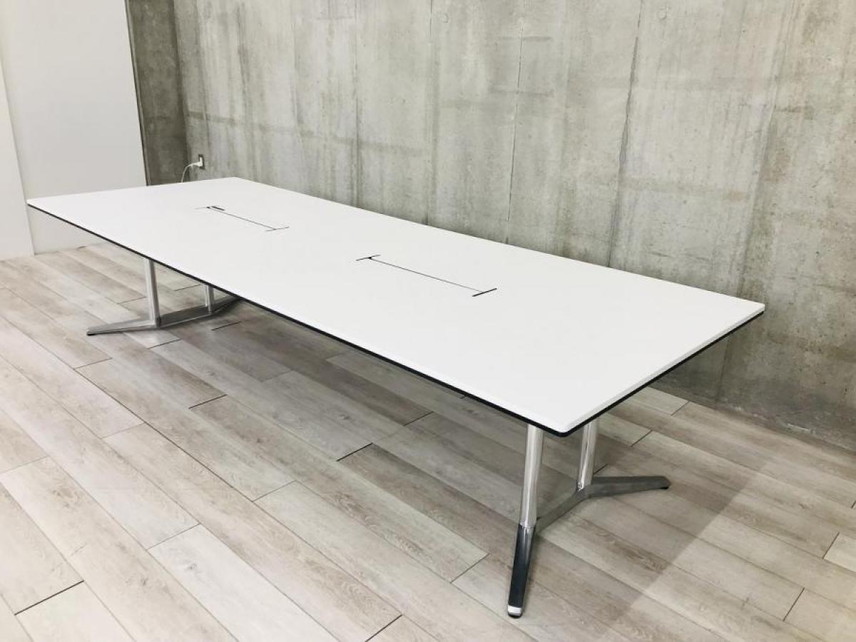【ワンランク上のカンファレンス空間を演出!】■オカムラ ラティオシリーズ 会議用テーブル W3200mm(8~12名用) 配線ボックス付 ホワイト 【Okamura RATIOⅡ】