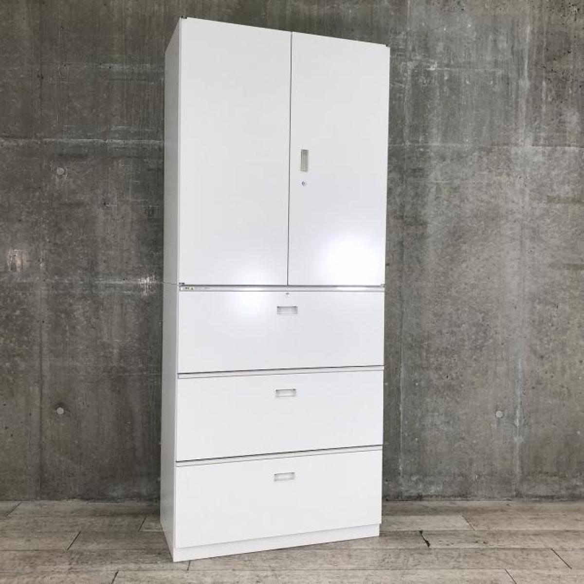 【T11】【商品入替のため、残り1台限り】イトーキ製 シンライン ホワイト W900xD450xH2140サイズ シリンダー錠 高品質で安心のスチールキャビネット! コレ1台で書類が一気に整理できます! 両開き+3段ラテラル 上下書庫セット!!