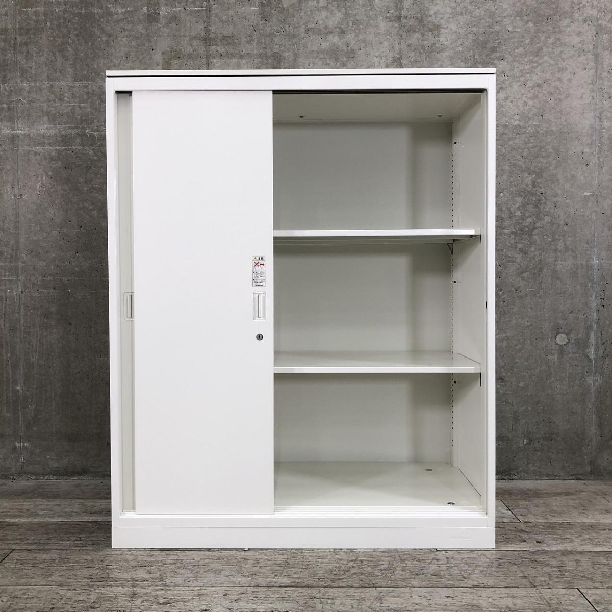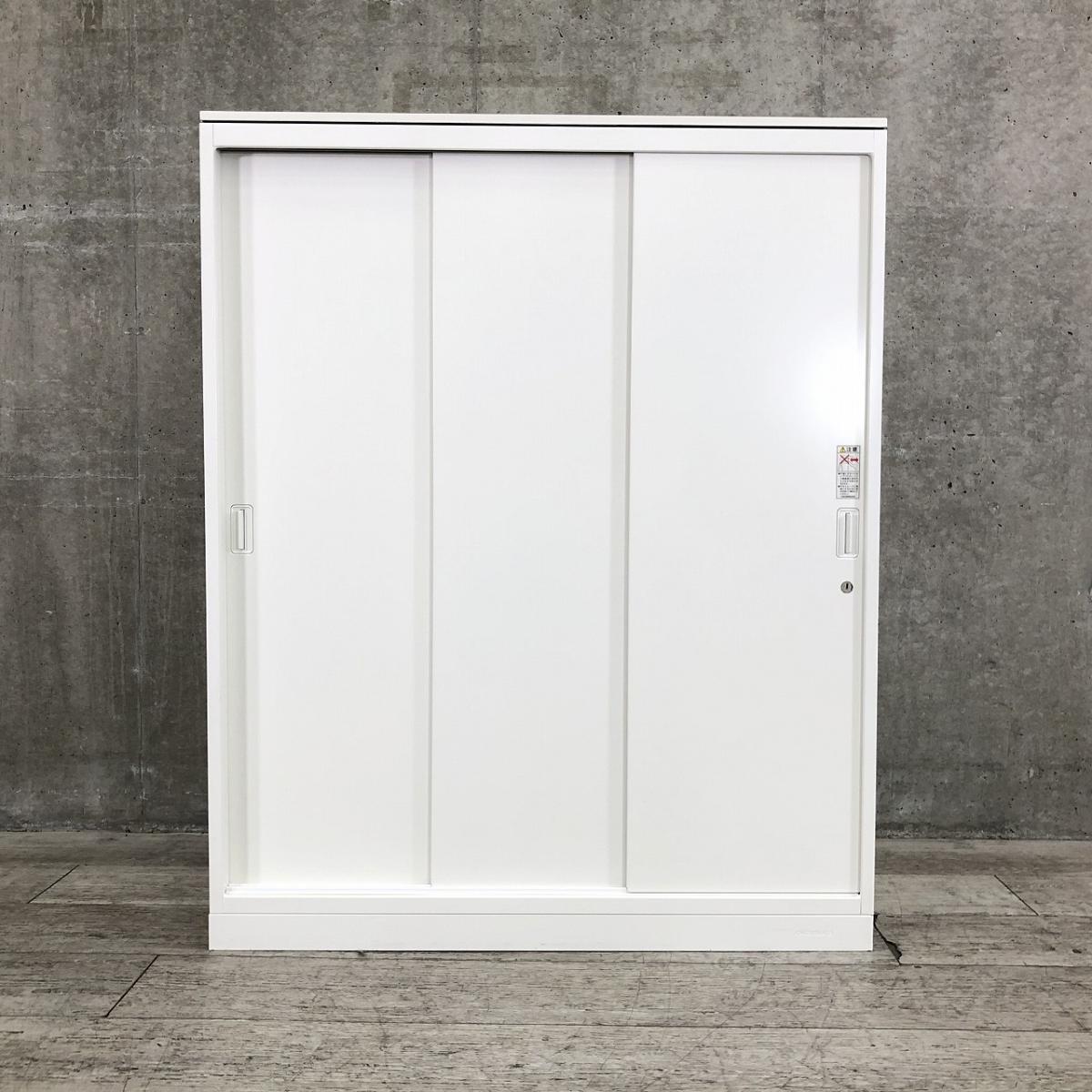 オカムラ製 人気レクトラインシリーズ ホワイト シリンダー W800xD450XH1050 3枚引戸 ※ベースなし 3枚引き違い書庫!!