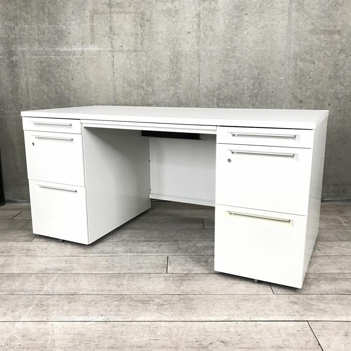 【希少!】【両袖タイプで収納たっぷり!珍しい幅1500㎜でワークスペースもしっかり確保!】■オカムラ(okamura)製 アドバンスシリーズ 両袖机 幅1500㎜ 左右袖3段 ■ホワイト ■シリンダー錠【A01008401】【IB】- 茨城南店