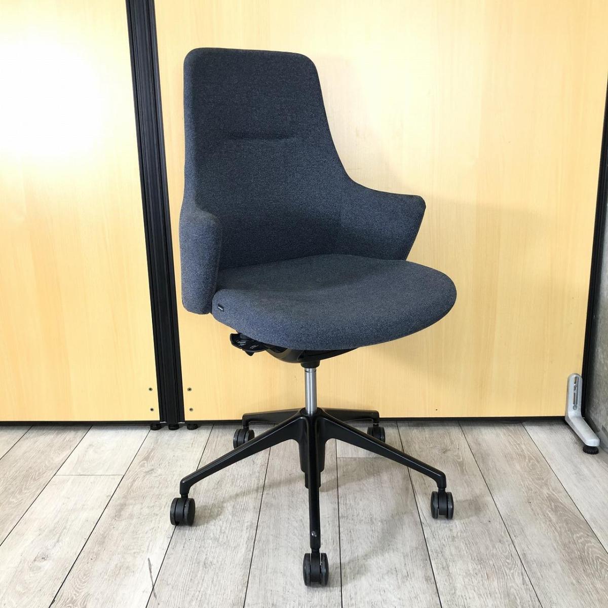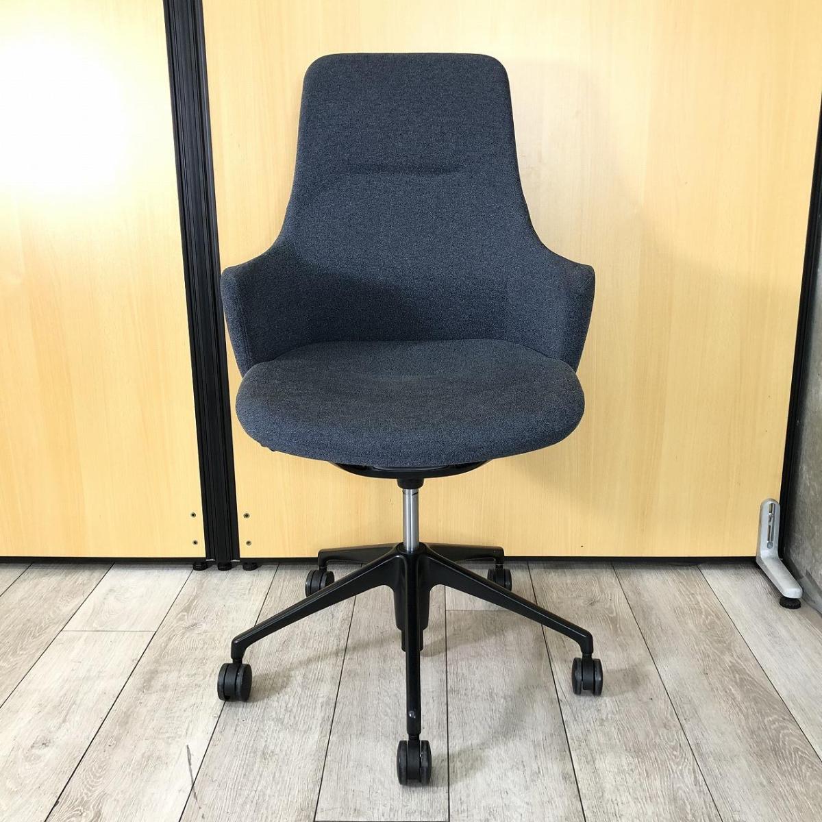 【働きやすく、居心地の良いオフィスへ!カジュアルかつ柔らかなデザインのライブスチェア入荷!】■オカムラ(okamura)製 ライブス(Lives)シリーズ 固定肘 ミーティングチェア ■キャスター付 色:ブラック ■ブルー 張地:インターロック- 福岡博多店