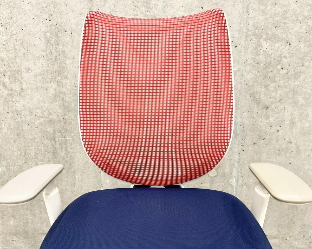 【来店限定キャンペーン】【定価約17万円】【クッション性抜群!長時間のデスクワークにおすすめ!】■オカムラ/サブリナ ■背もたれレッド/座面ブルー/フレームホワイトの珍しいトリコロールカラー!■可動肘 背もたれメッシュ■前傾チルト機能付き