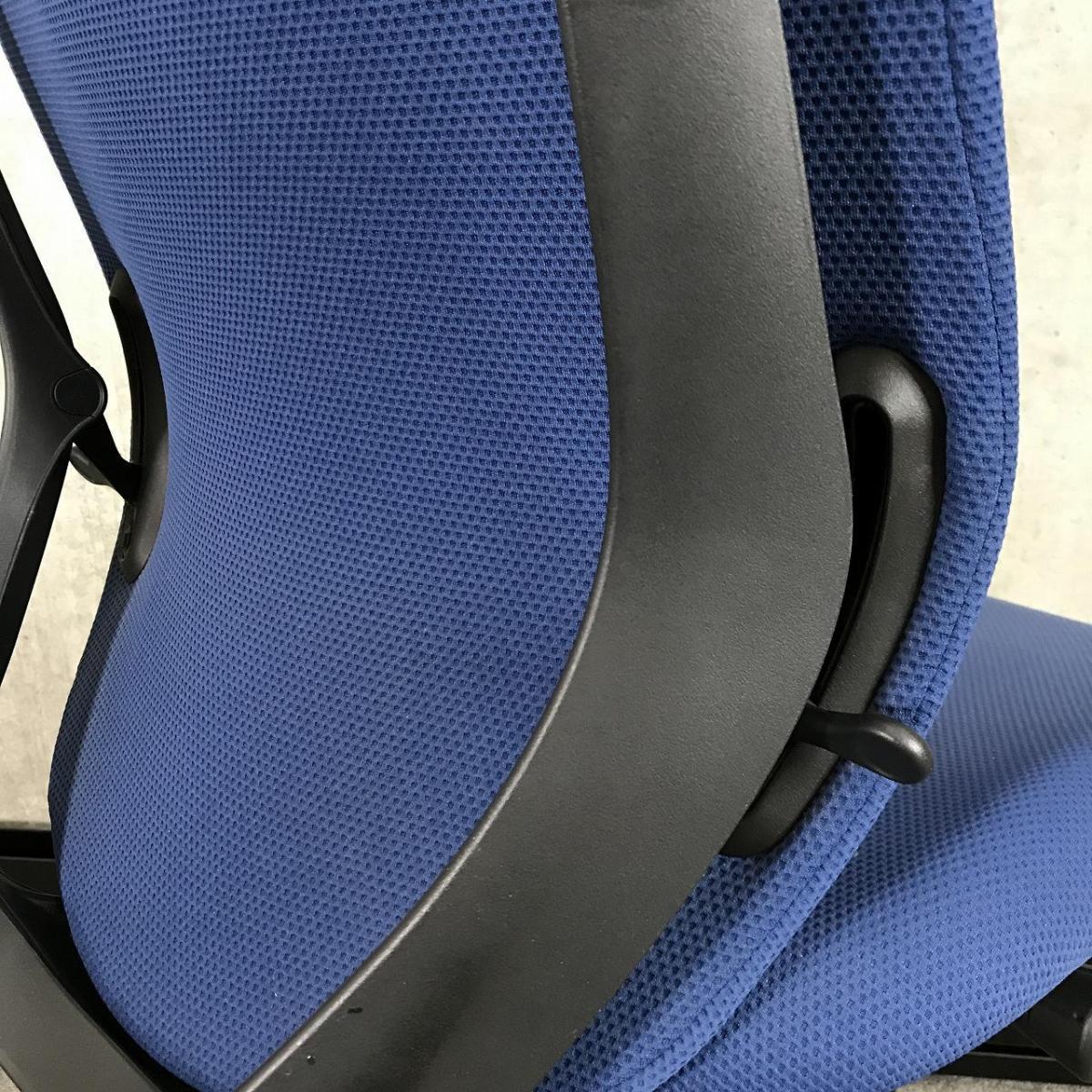 【三次元曲面が快適にフィット!!前傾チルト機能付のオフィスチェア!】■オカムラ(okamura)製 シルフィー(Sylphy) 肘無し ハイバック ■背クロス ■ブルー × ブラックシェル- 福岡博多店