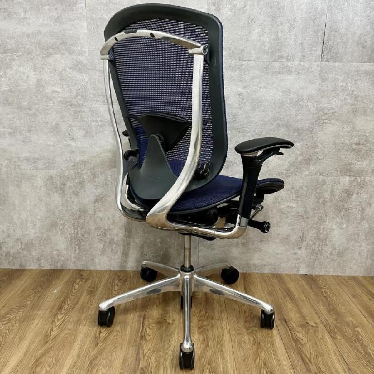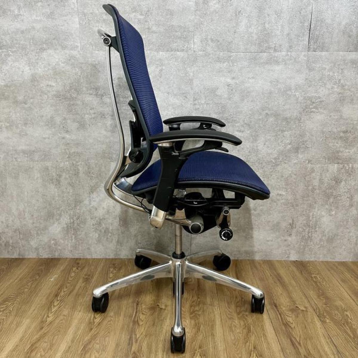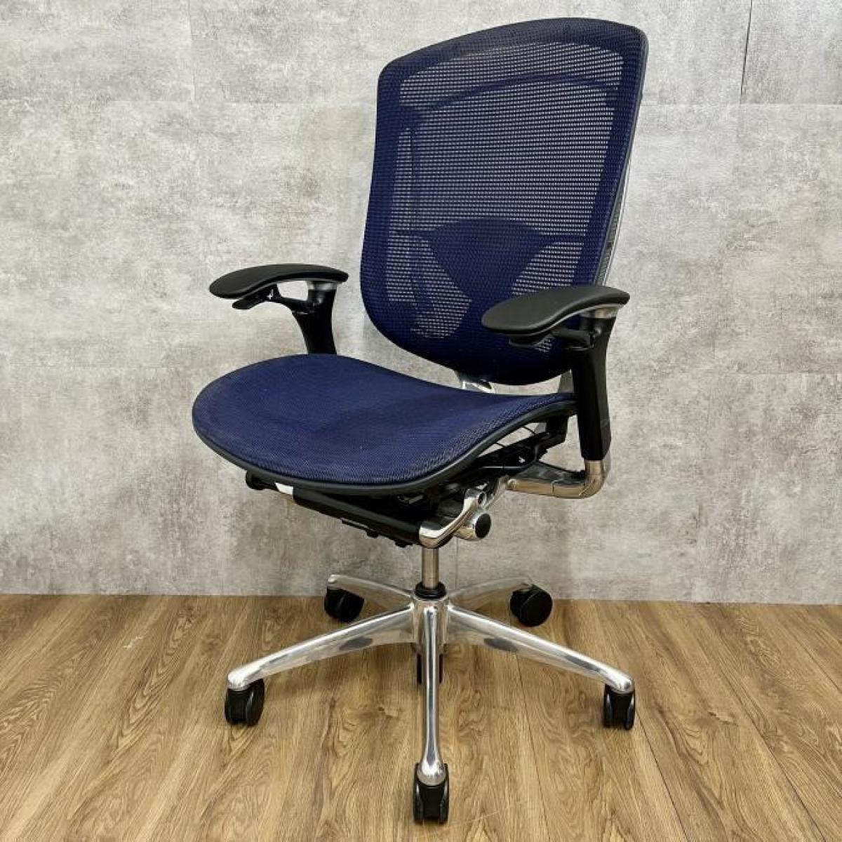 【オカムラ製の最高級チェアが残り1脚限りです!!】オフィスバスターズ 東大阪店 オカムラ製 コンテッサ シリーズ ダークブルー アジャストアーム※可動肘 背/座面メッシュ ランバー 世界で認められた革新的タスクチェア!人間工学に基づいた快適な座り心地を実現! 肘付きハイバックチェア!! 中古 外部倉庫品