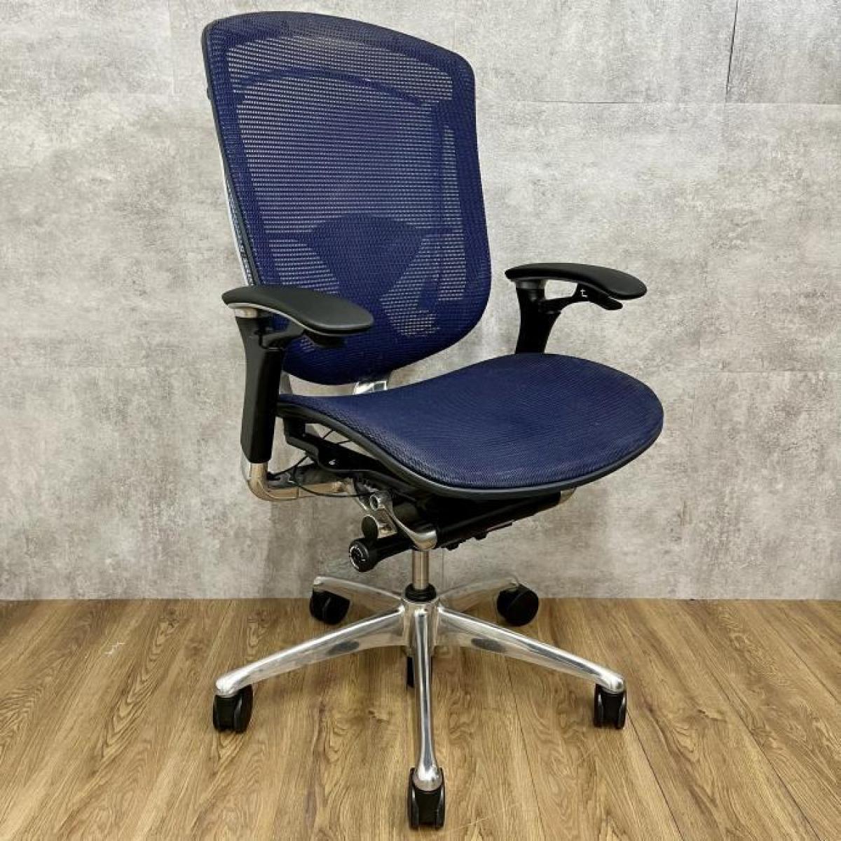 【オカムラ製の最高級チェアが残り1脚限りです!!】オフィスバスターズ 東大阪店 オカムラ製 コンテッサ シリーズ ダークブルー アジャストアーム※可動肘 背/座面メッシュ ランバー 世界で認められた革新的タスクチェア!人間工学に基づいた快適な座り心地を実現! 肘付きハイバックチェア!! 中古 外部倉庫品