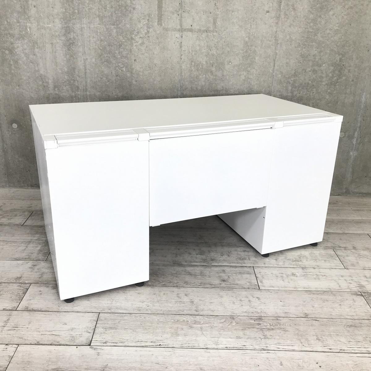 W1400mmの大きめサイズで両サイドに袖引き出しがあり、
