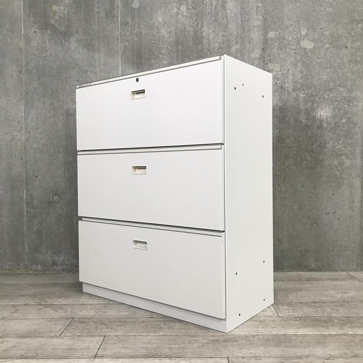 【A4ファイルも沢山収納可能!ホワイトカラーの人気シリーズ3段ラテラル書庫!】■イトーキ(ITOKI)製 シンラインシリーズ (THIN LINE) 3段ラテラル書庫 ローキャビネット ■シリンダー錠 ■ホワイト