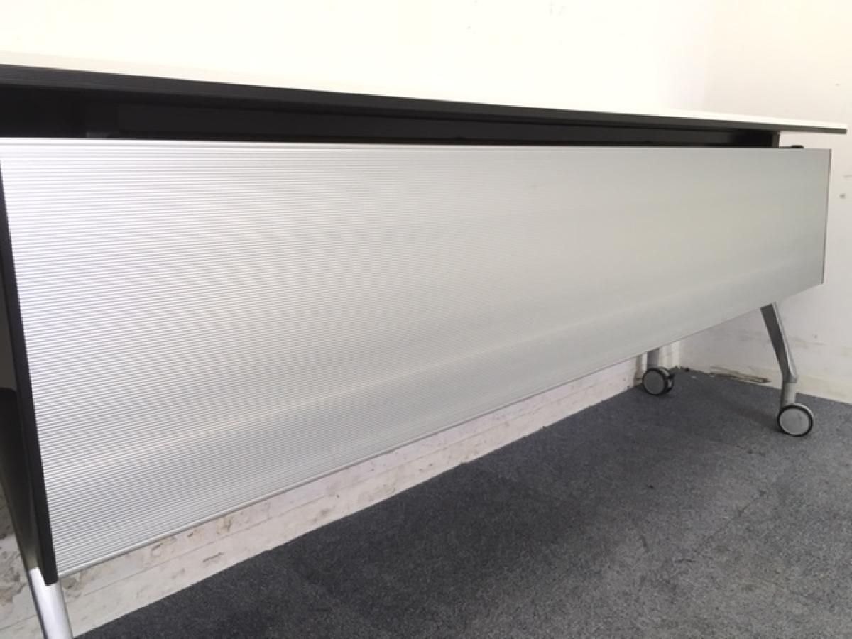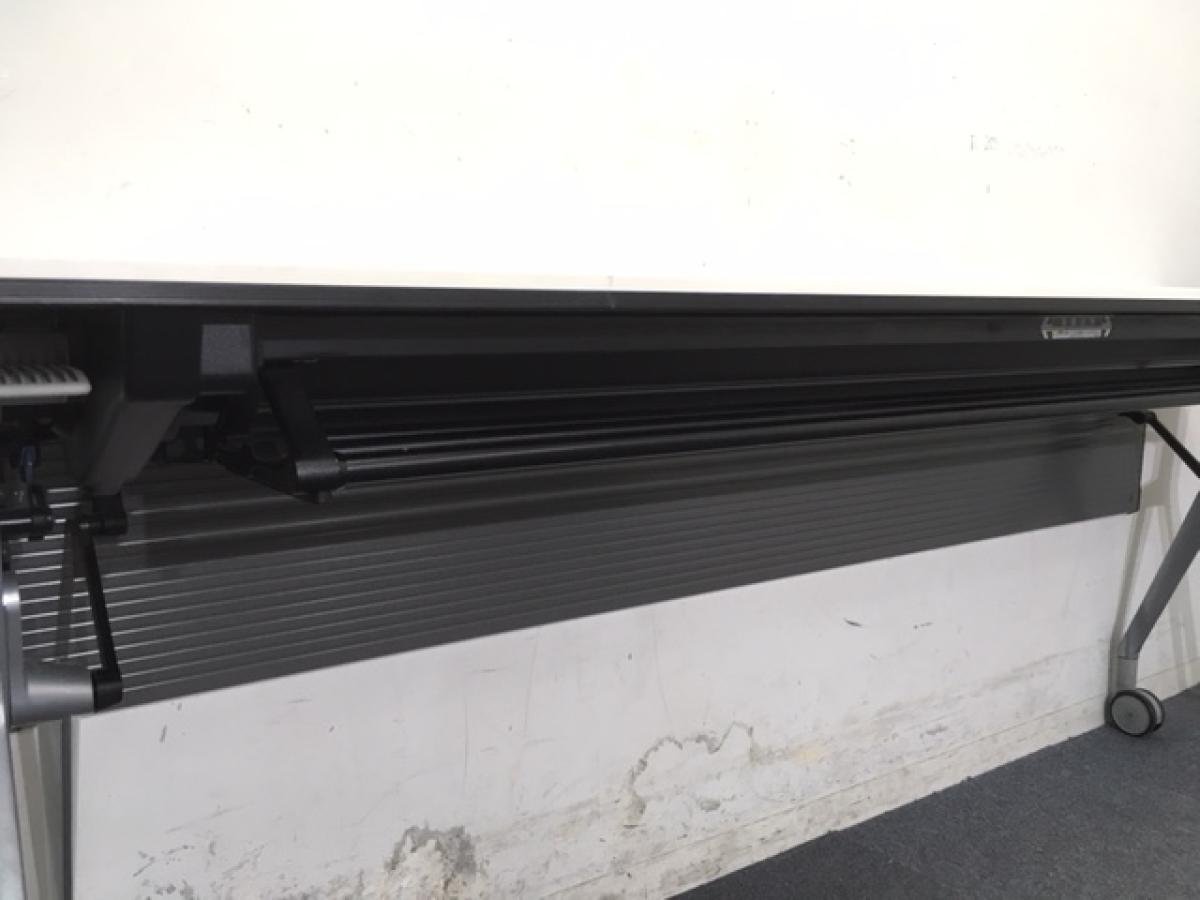 【折りたたみ収納が秀逸!スタイリッシュなデザインで高品質!】■オカムラ(okamura)製 インターアクトNT(INTER ACTNT) サイドスタックテーブル W1800×D450×H720mm ■配線カバー無し ■キャスター付 ■ホワイト- つくば店