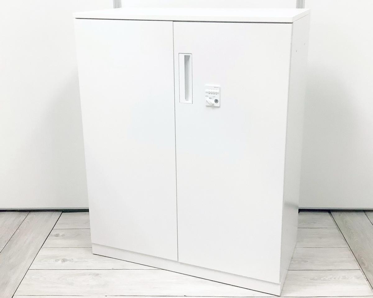 【収納物がひとめで分かる両開き戸タイプ!】■コクヨ(KOKUYO)製 エディア(EDIA)シリーズ 両開き書庫 ローキャビネット H1130㎜ ■天板・ベース付 ■ホワイト ■シリンダー錠