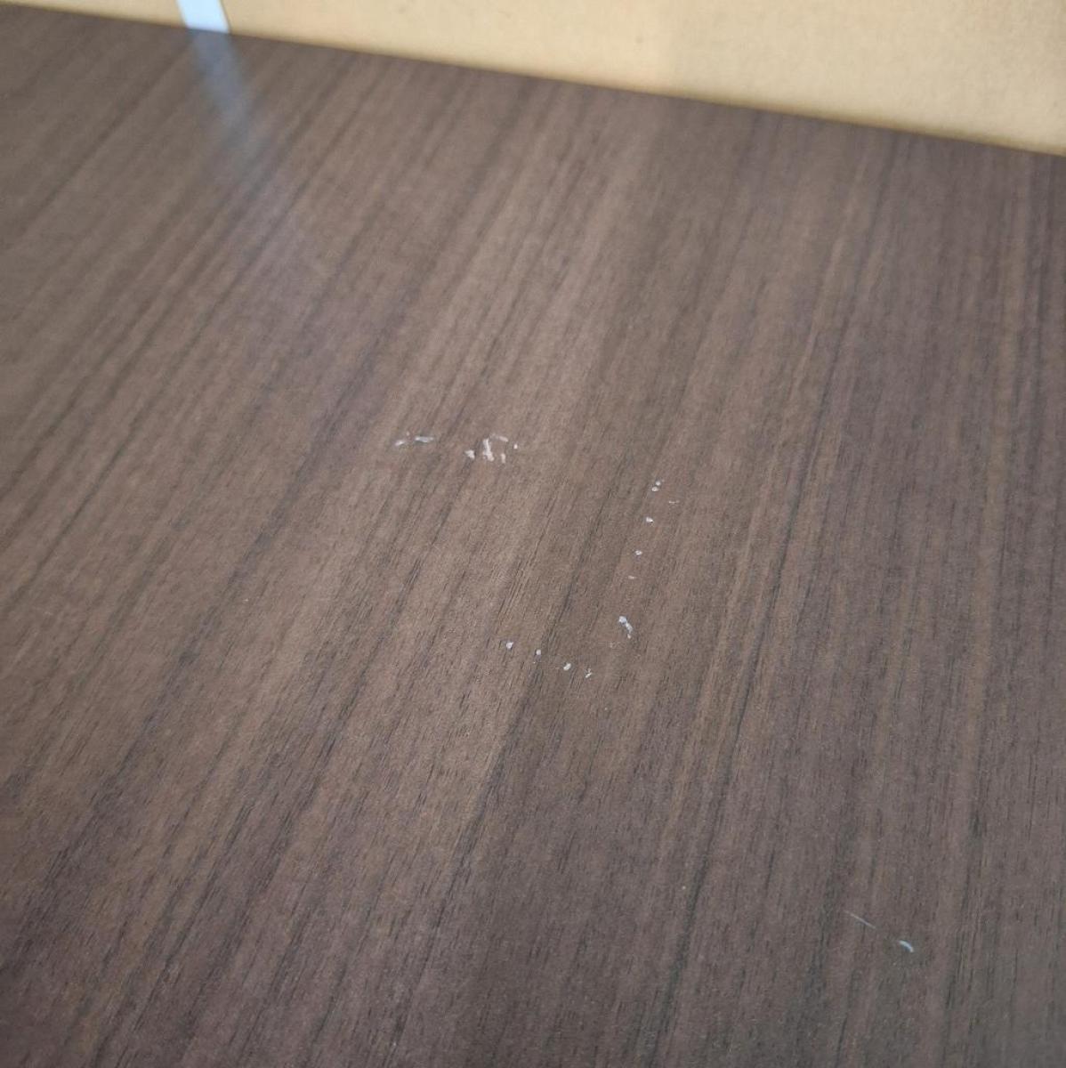 - あり黄ばみ・変色が広い範囲にうっすらある、または濃い黄ばみ・変色が一部ある。(例、天板、幕板、棚板、サイド部分、脚部等にある。)