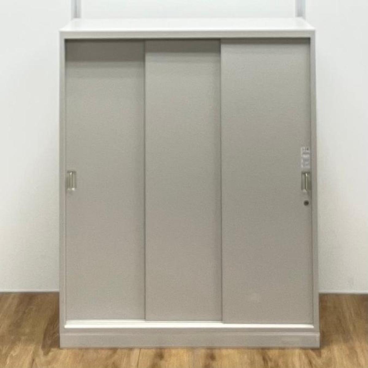 【お問い合わせの多い引違い書庫が入荷!スライド引き戸だから開閉スペースに困りません!】■オカムラ(okamura)製 レクトラインシリーズ 3枚引き戸タイプ 引違い書庫 ■シリンダー錠 ■ニューグレー